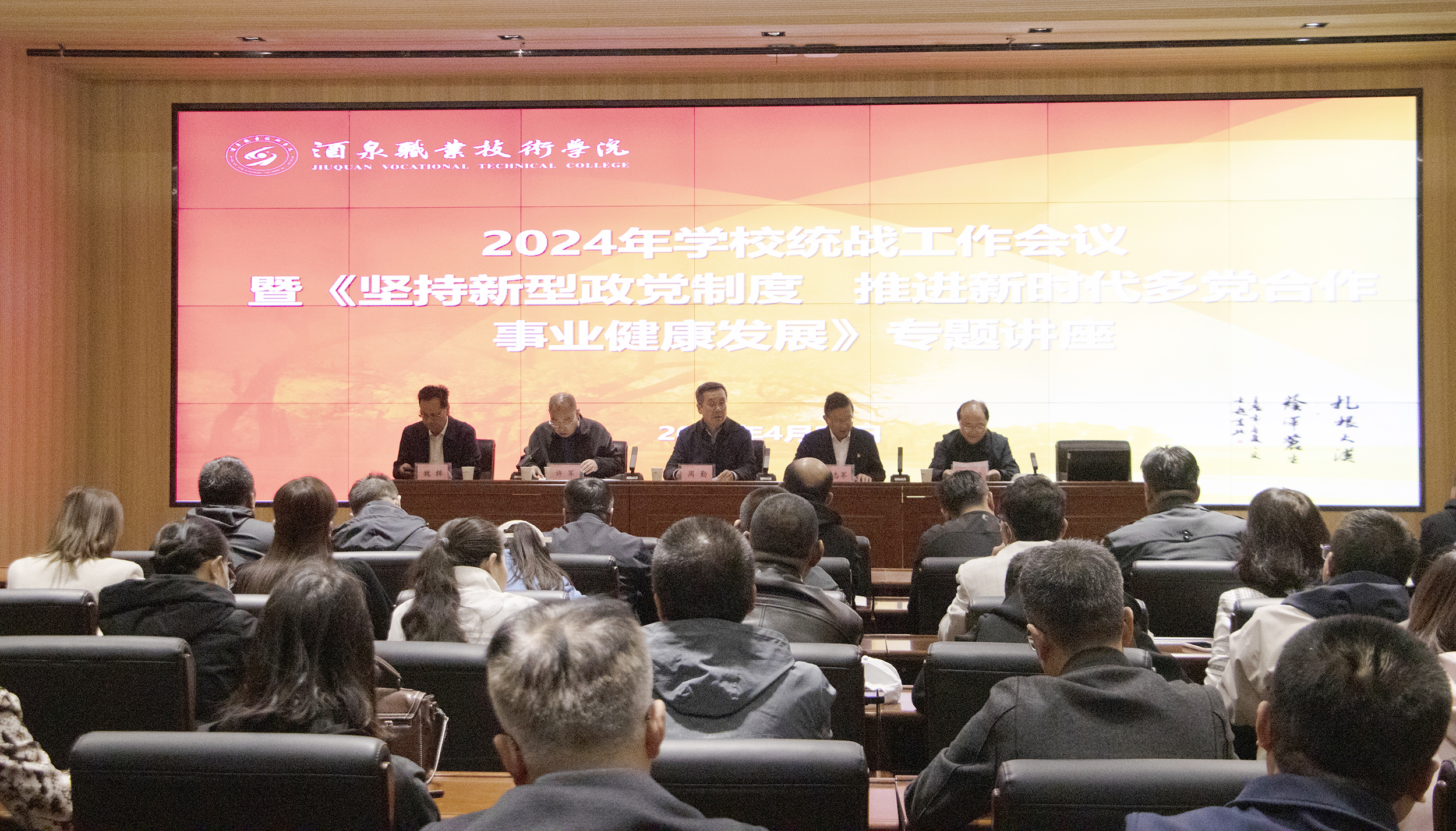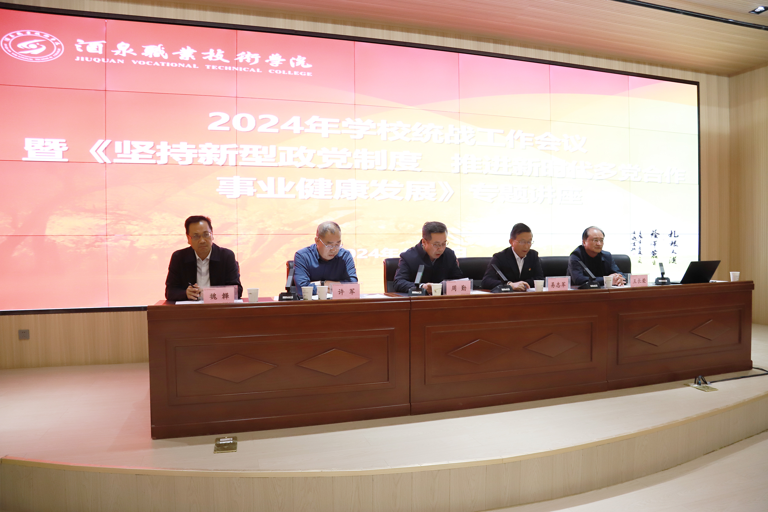 要闻快递 > 正文为贯彻落实全国、全省、全市统战部长会议精神,准确把握统一战线的新论述、新要求,加强学校统战工作,共同促进学校高质量建设和发展,4月29日,学校召开2024年统战工作会议暨《坚持新型政党制度 推进新时代多党合作事业健康发展》专题讲座。市委统战部副部长周勤、市委统战部党派科科长钱利福应邀出席会议。党委书记、校长易志军,党委委员、副校长王长荣,党委委员、纪委书记、监察专员魏韡等党委领导班子成员参加会议。党委副书记许军主持会议。