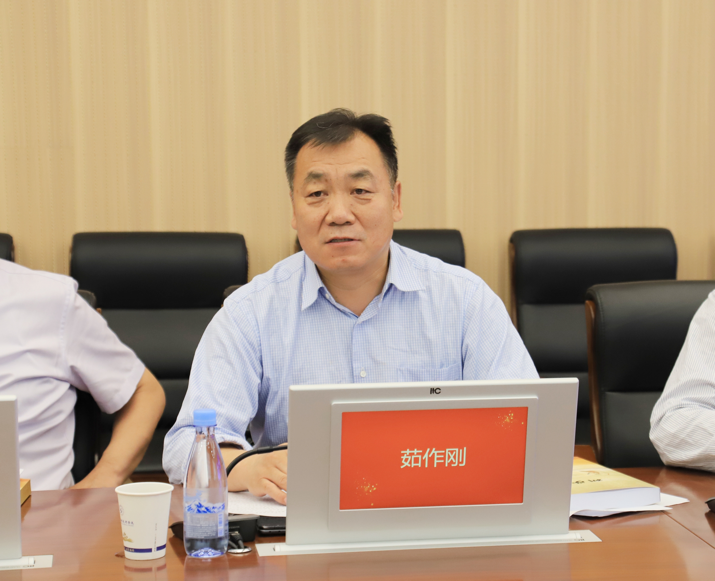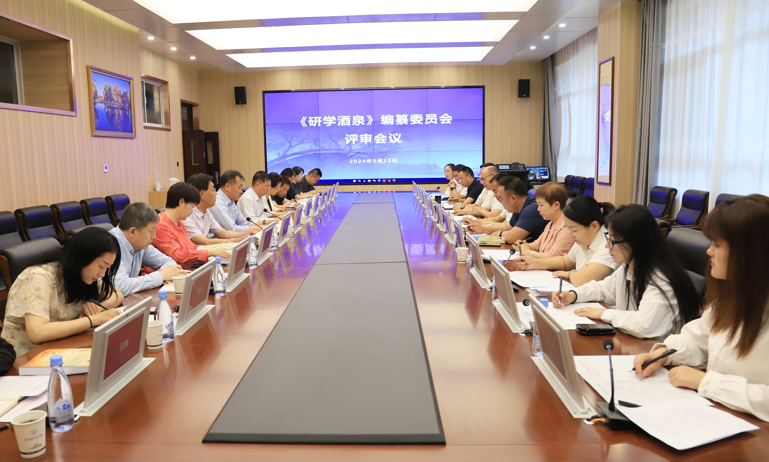 要闻快递 > 正文5月22日上午,《研学酒泉》编纂委员会评审会议在酒泉职业技术学院弘毅楼召开。酒泉市文体广电和旅游局党组书记、局长、《研学酒泉》编纂委员会主任茹作刚主持会议。酒泉职业技术学院党委书记、校长、《研学酒泉》编纂委员会主任易志军教授,酒泉市文体广电和旅游局党组成员、一级调研员、《研学酒泉》编纂委员会副主任李春云,酒泉市委教育工委委员、二级调研员、《研学酒泉》编纂委员会副主任赵志俊出席会议。