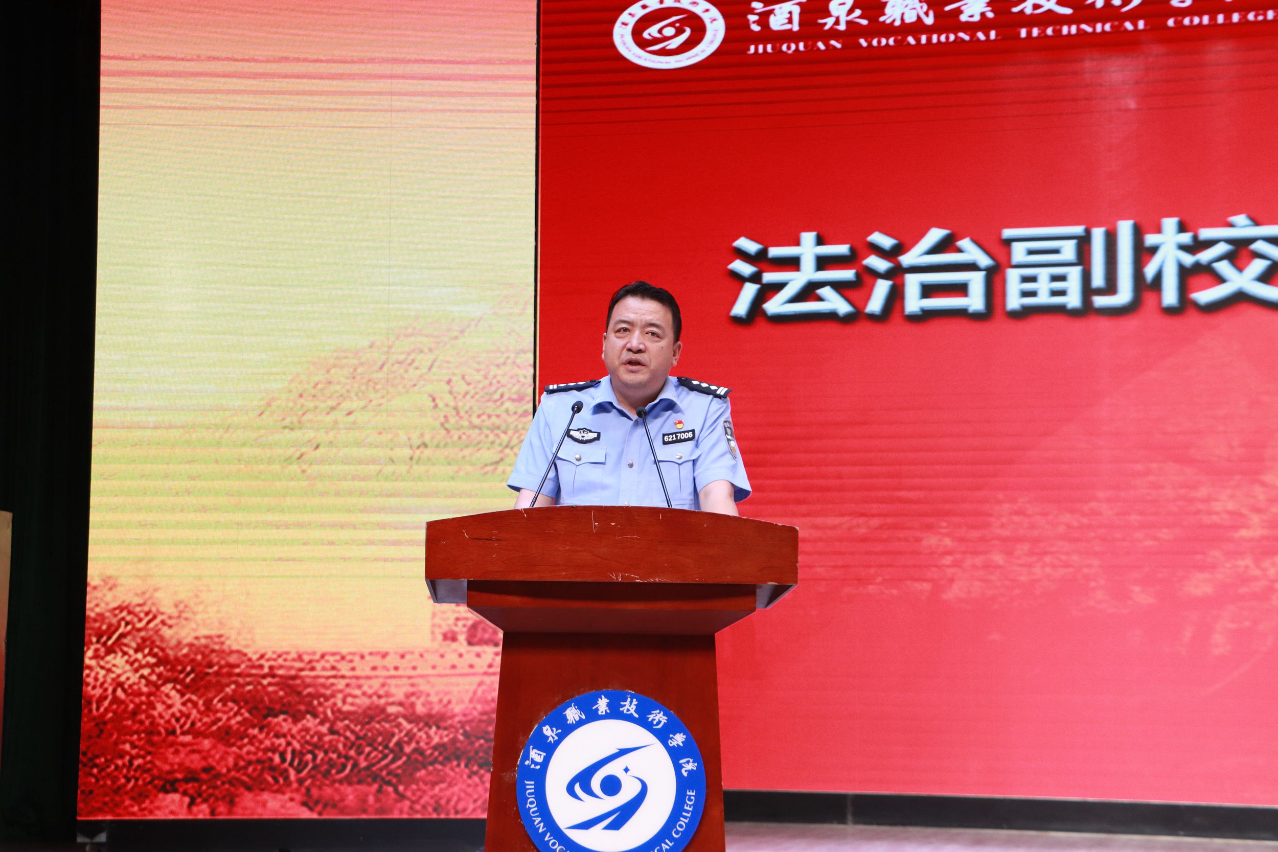 施荣对酒泉监狱在学校大学生法治教育工作长期给予的支持和帮助表示感谢,指出做好大学生法治宣传教育工作是学校主动创稳、构建安全稳定、和谐文明校园的重要内容;他要求,全体师生要牢固树立法治意识,积极宣传法治思想,主动遵守宪法,依法行为,合法办事。