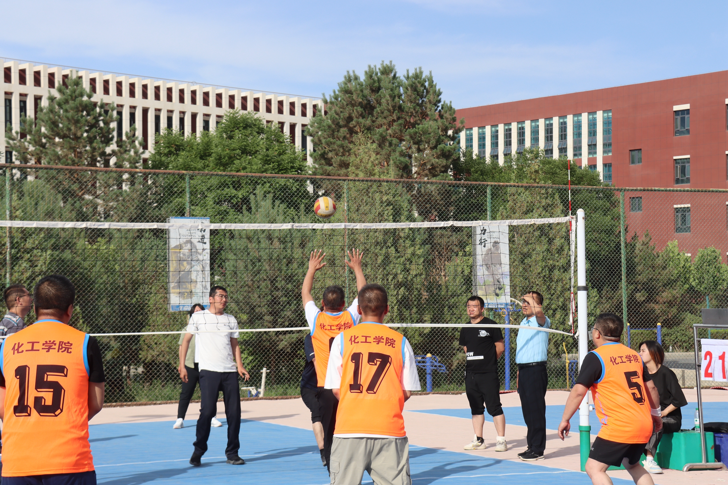 此次比赛由学校工会主办,体育与健康学院承办,于6月11日-6月26日举行,分为小组循环赛和交叉淘汰赛两个比赛阶段,19支代表队190名参赛队员参加比赛,旨在传承拼搏精神、弘扬体育文化,加强教职工之间的交流与合作,增进团队凝聚力和友谊,培养合作精神和团队协作能力,以更加饱满的工作热情、更加积极的心态投入到工作中,为推动学校高质量发展贡献力量。