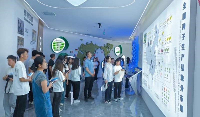 在酒泉市肃州区国家现代农业(种业)产业园种子科研中心团队详细了解古往今来种子文化和种业发展历程,团队还参观了现代种业智慧博览及科技研发平台,看到了科研人员如何运用高科技手段对种子进行基因分析、选育和改良。