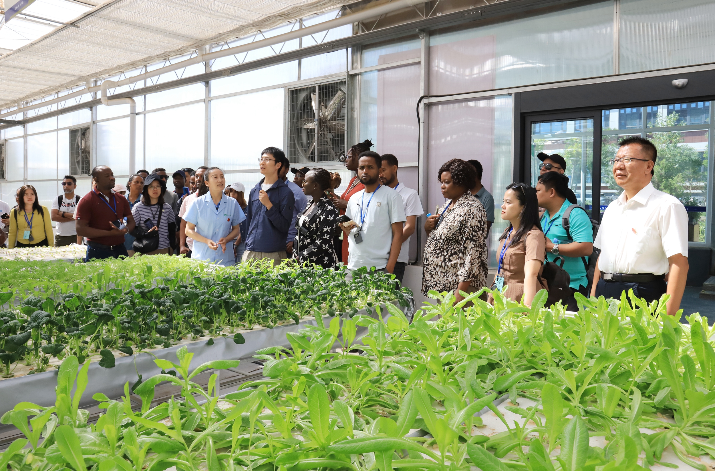 考察团主要参观了我校现代农业技术中心、新能源国际共享服务中心、光伏电场等场所并进行合影留念。