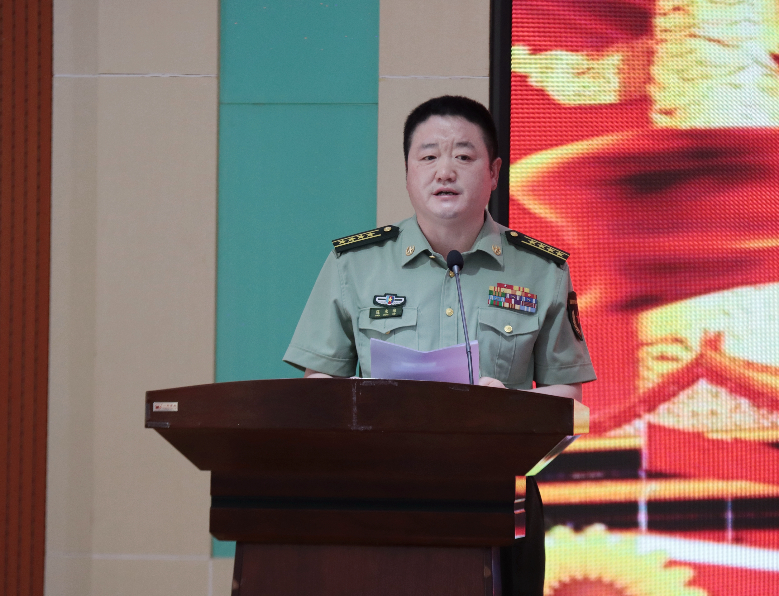 酒泉市征兵办公室主任、酒泉军分区大校副司令员陈东伟讲话