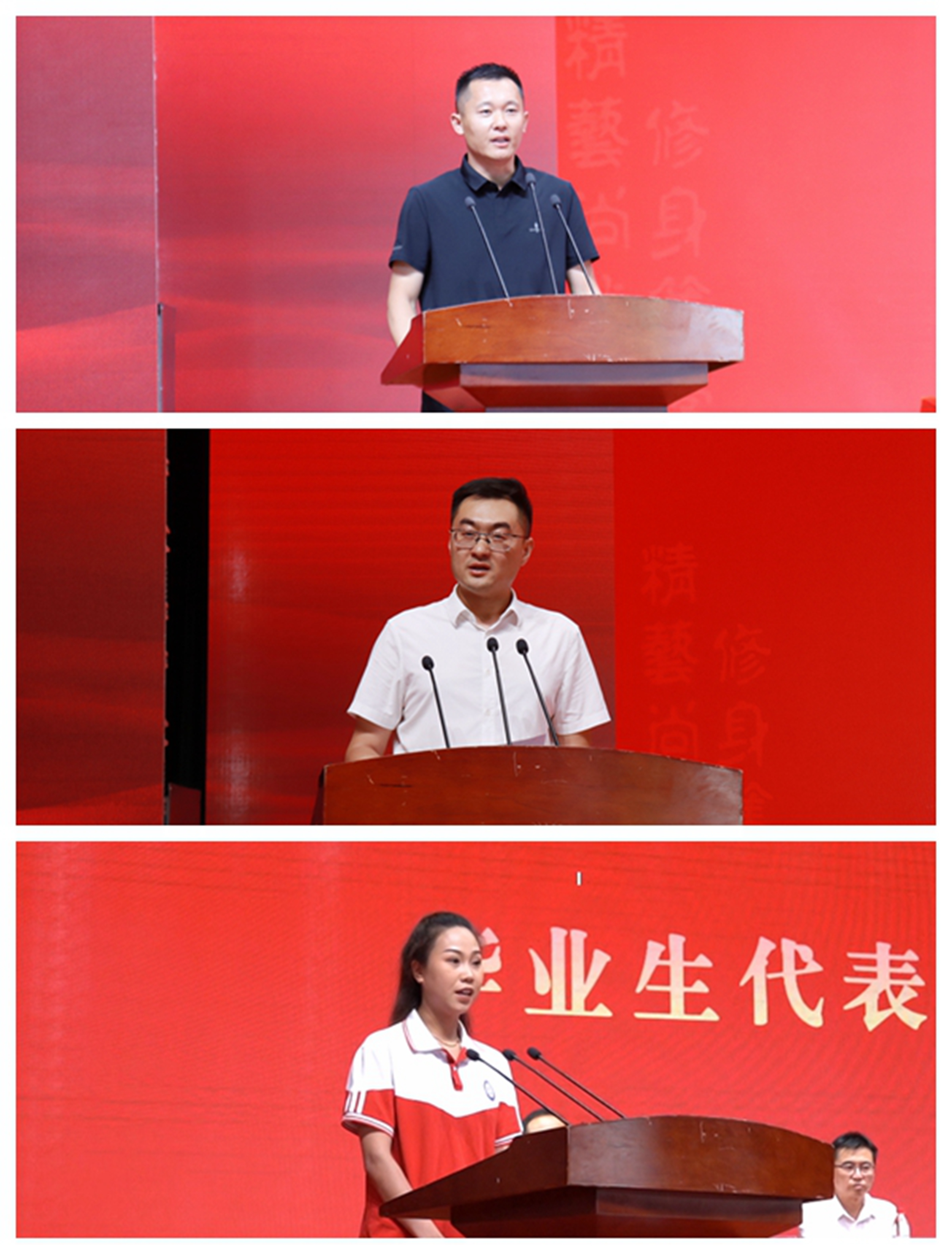 易志军首先向圆满完成学业、意气风发的同学们表示最热烈的祝贺。他表示,大学毕业,同学们将面临很多人生选择,是遵从内心的信念,还是逐水漂流如浮萍,想与同学们分享三句话:一是胸怀国之大者,厚植家国情怀,做信仰坚定的“追梦人”。二是笃定鸿鹄之志,坚持知行合一,做胸怀热爱的“赶考人”。三是勇于砥砺奋斗,奉献青春之智,做不辱使命的“答卷人”。他希望在未来的日子里,酒职的担当,将在同学们励志报国的作为中呈现;酒职的故事,将在同学们创新奉献的奋斗中书写;酒职的荣光,将在同学们挺膺担当的捷报中闪耀。你们永远是母校深切的牵挂,母校永远是你们温暖的港湾,母校大门永远向你们敞开。