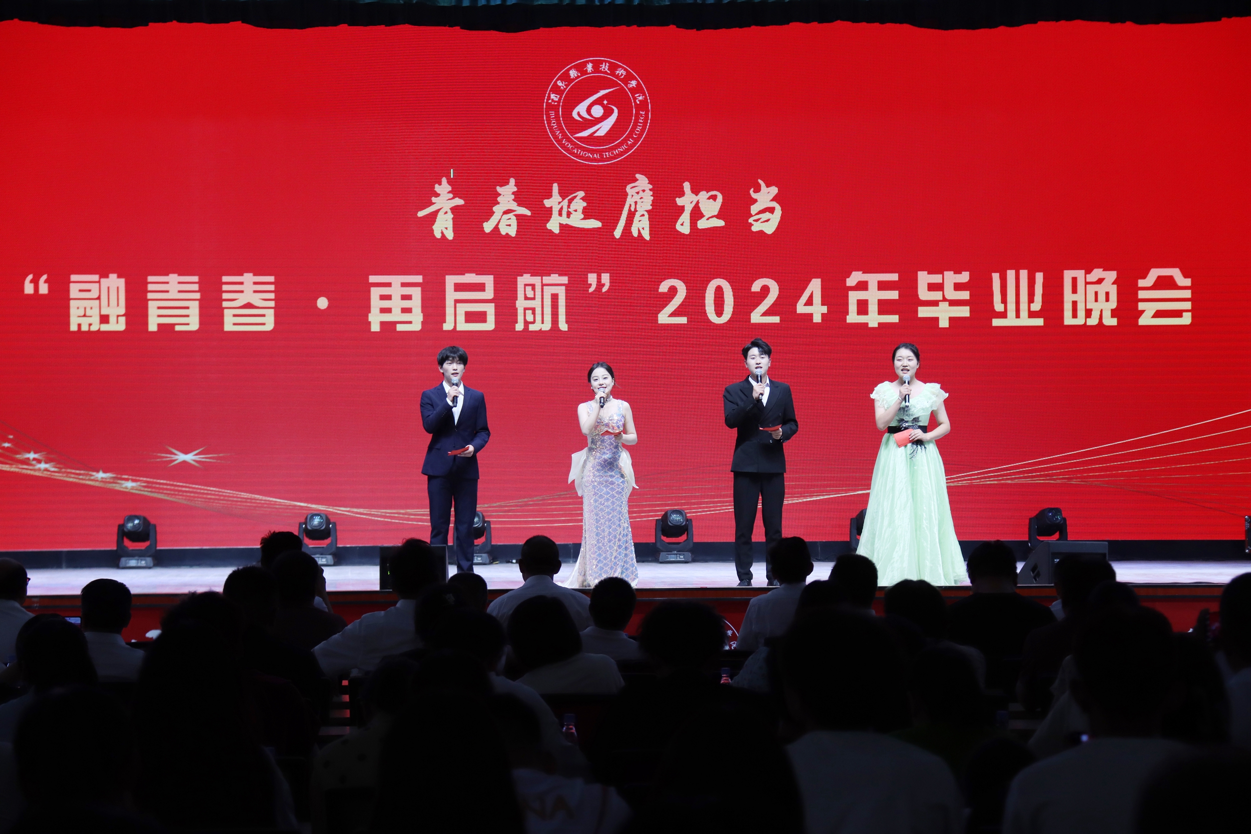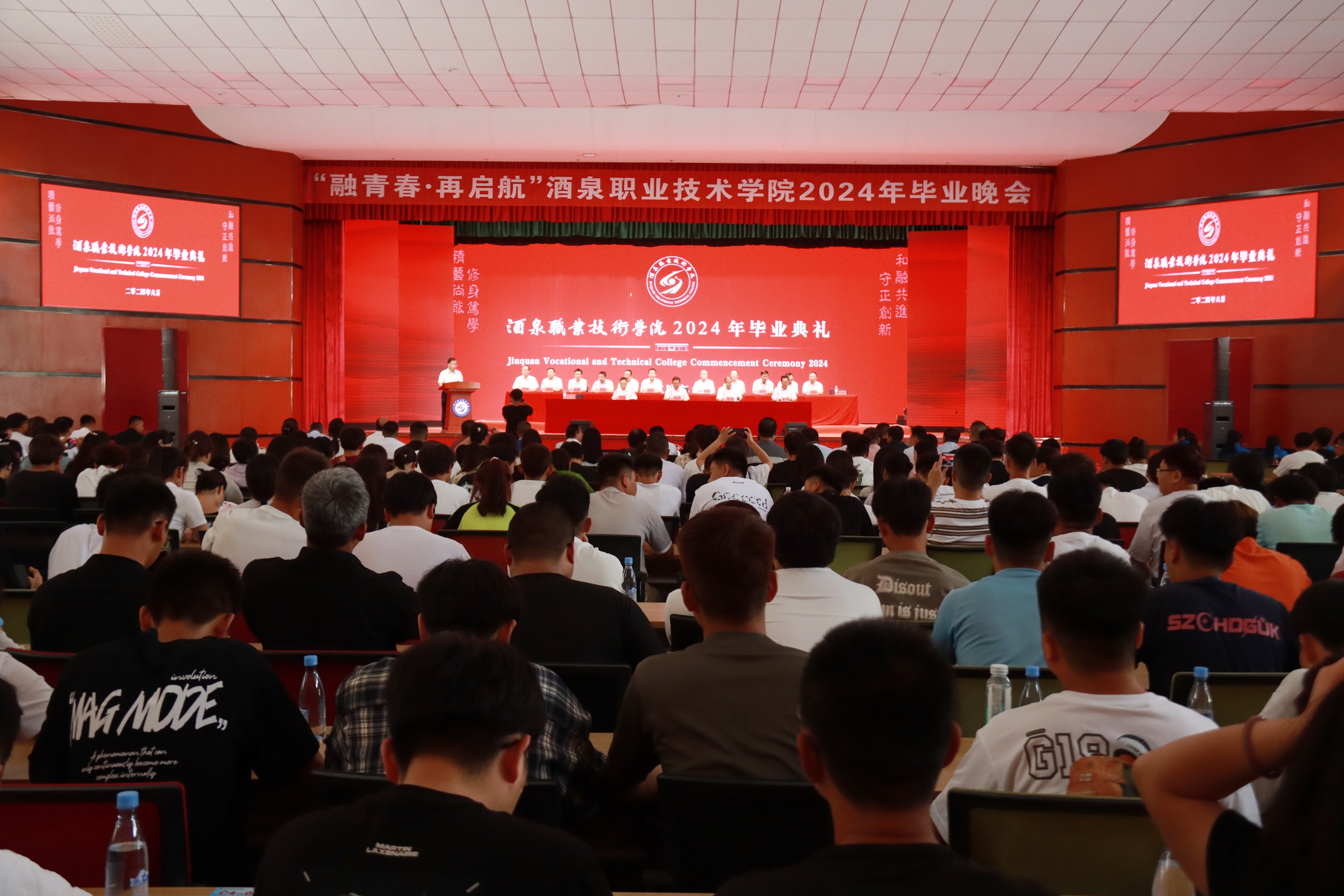 会后,与会人员观看了精彩的毕业晚会。晚会共分为《胡杨·青春华章》《胡杨·和融共进》《胡杨·梦想起航》三个篇章,《奔赴辉煌》《艺韵九州》《西域芳华》《春山酒韵》《情忆酒职》等节目,以歌话别,以舞相送,使青春与未来交响, 诠释不舍与珍惜,祝愿毕业生们牢记“修身笃学 精艺尚能”的酒职校训,发扬“扎根大漠 荫泽苍生”的胡杨精神,铆足干劲,抖擞精神,拥抱每一个大有可为的未来,谱写属于你们的精彩华章。