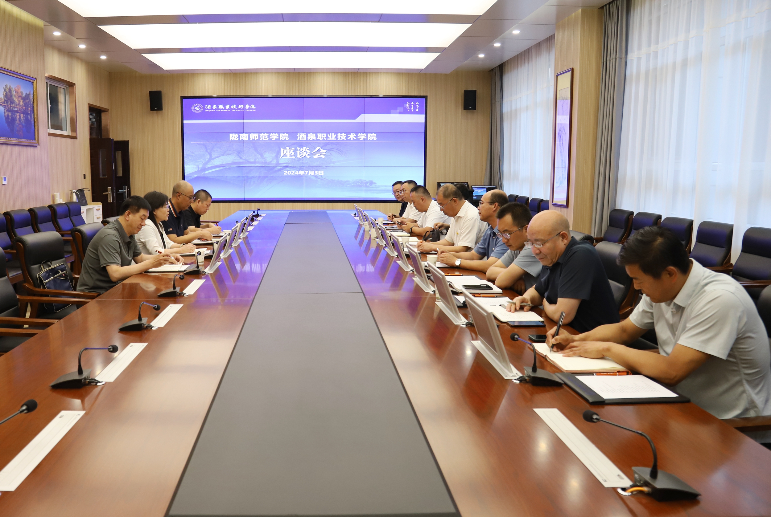 李艳红介绍了陇南师范学院基本情况,她表示酒泉职院是一所内涵丰富、特色鲜明的学校,希望两校加强交流与联系,优势互补,共同进步。双方还围绕美术与艺术设计、电子商务、新能源类等专业建设、科研工作进行了深入交流。