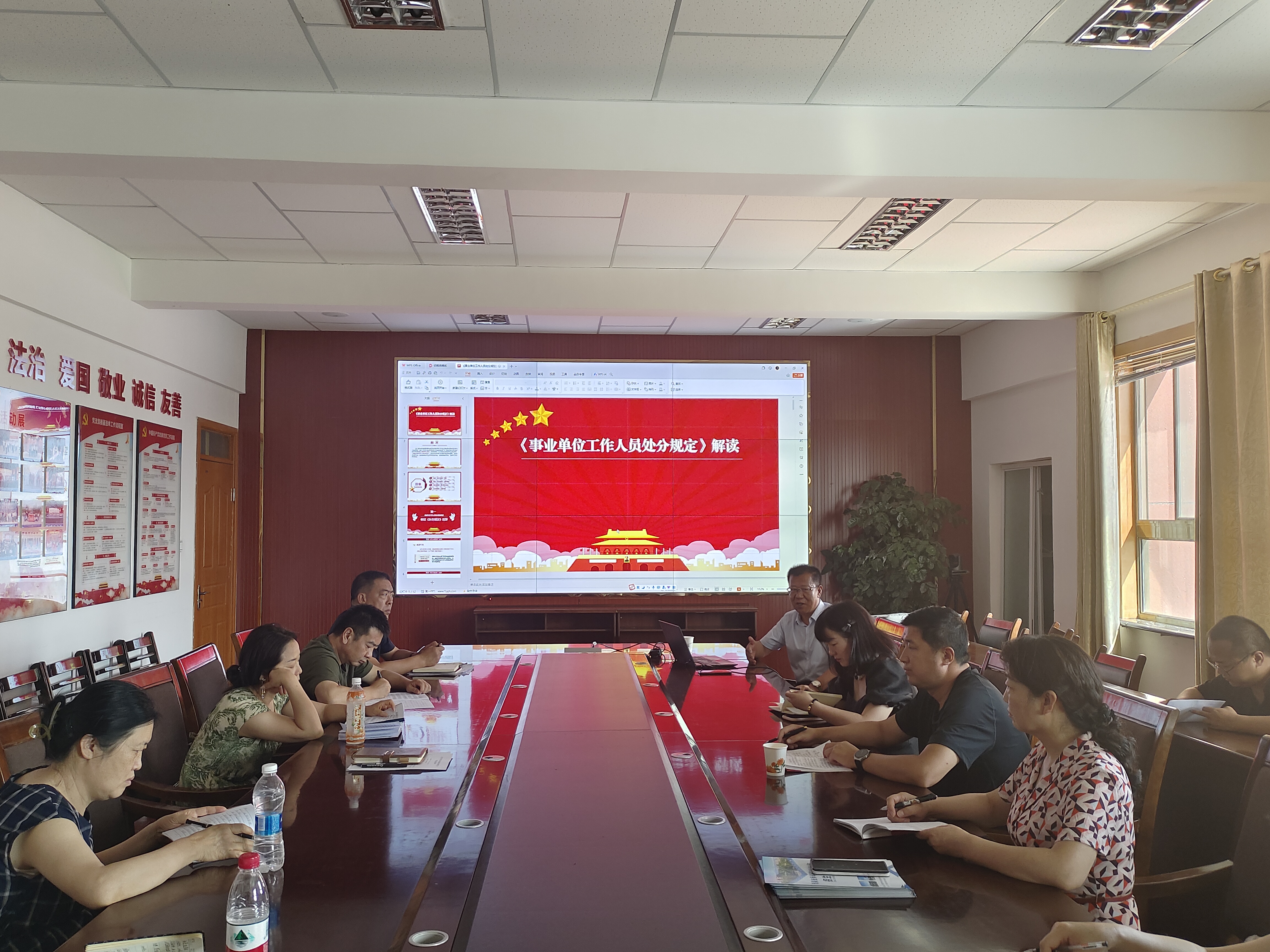 王金明围绕党纪学习教育要求,以“深化规定学习,保障高质量发展”为题,重点聚焦《事业单位工作人员处分规定》,立足党情、国情、校情,结合自身学习感悟,从“制定《处分规定》背景、制定《处分规定》总体考虑、《处分规定》四大亮点、《处分规定》主要内容”四个方面以案说纪、详细解读。