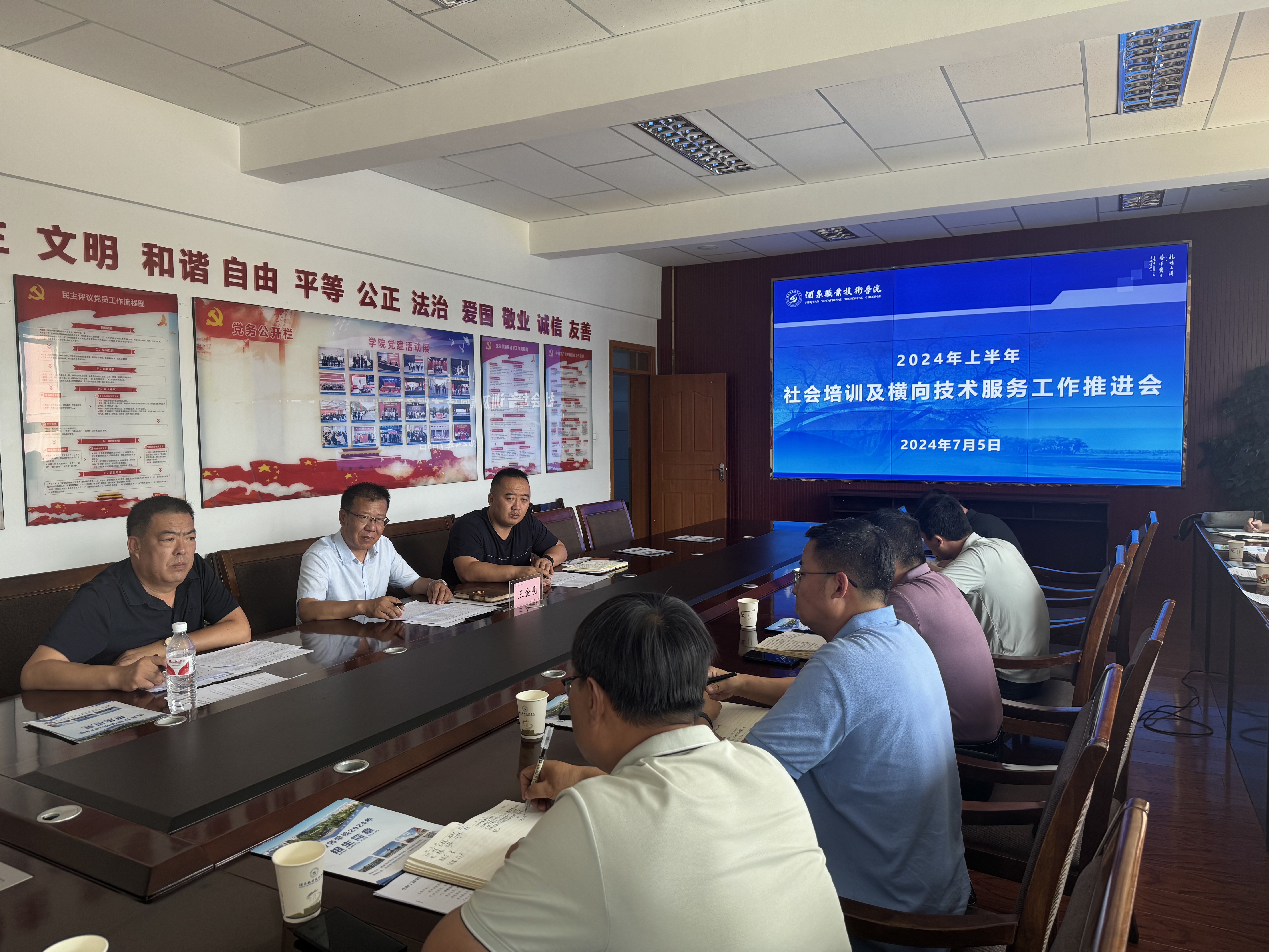 为进一步加强横向技术服务,凝聚合力推进学校社会化培训工作,7月5日,2024年社会培训及横向技术服务工作推进会议在行知楼四楼会议室举行。党委委员、副校长王金明主持了本次会议。各二级学院、创新创业学院、国际交流学院、新能源研究院、培训处、科研处、本科教学部、酒泉工贸中专负责人,酒泉卫校分管科研培训负责人参会。