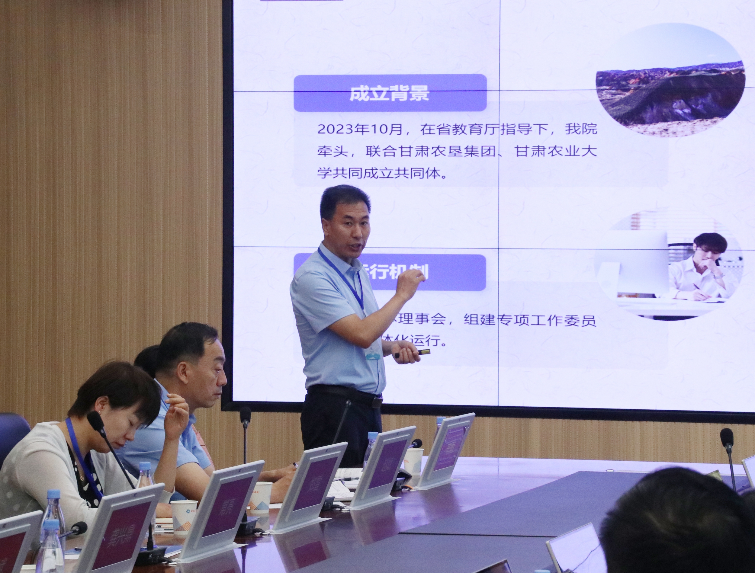 会上,来自酒泉经济技术开发区产教联合体代表酒泉市经济开发区党工委委员、管委会副主任尹玺从政策支持方面,对联合体和共同体建设进行交流发言,为校企合作提供了借鉴思考;全国人工智能+安全(数字安全)行业产教融合共同体代表360集团ISC学院副院长秦江艳女士从企业的视角,提出了行业产教融合共同体的企业需求和成功做法;国家有色金属行业产教融合共同体代表兰州资源环境职业技术大学马琼教授、全国现代种业技术产教融合共同体代表酒泉职业技术学院柳立新教授、西北寒旱区域现代农业产教融合共同体代表甘肃农业职业技术学院宋世斌教授等代表,从学校角度,分享了目前本校在行业产教融合共同体建设中的实践经验、困难和需求。