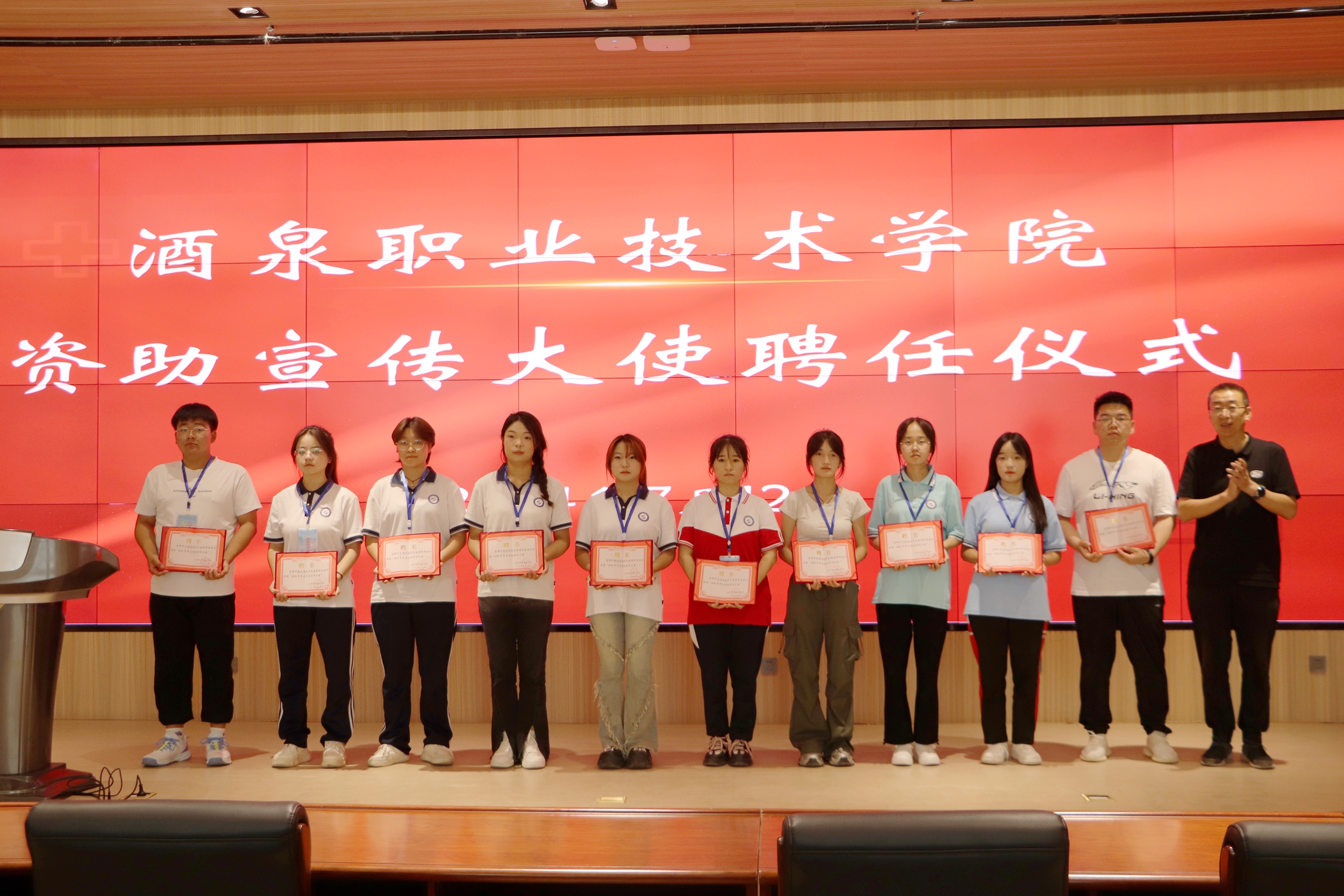 7月14日下午,酒泉职业技术学院“2024年学生资助宣传大使”聘任仪式在弘毅楼启明厅举行,学生处、各二级学院团委书记、专职辅导员及学生代表80余人参加聘任仪式。