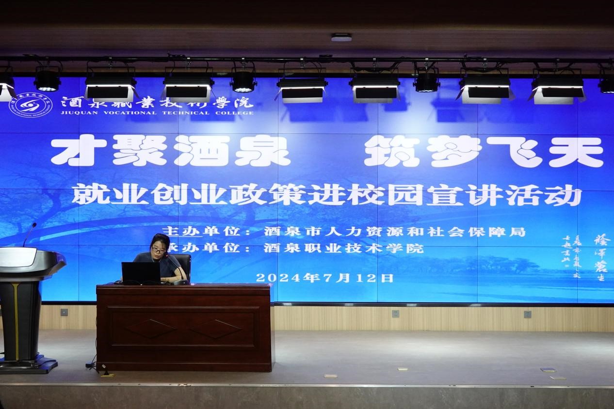 为深入贯彻学习习近平总书记在中共中央政治局第十四次集体学习时就促进高质量充分就业的讲话精神,助力我校毕业生高质量充分就业,7月12日下午,学校邀请酒泉市人社局为我校毕业生举行“才聚酒泉 筑梦飞天”就业创业政策进校园宣讲活动。