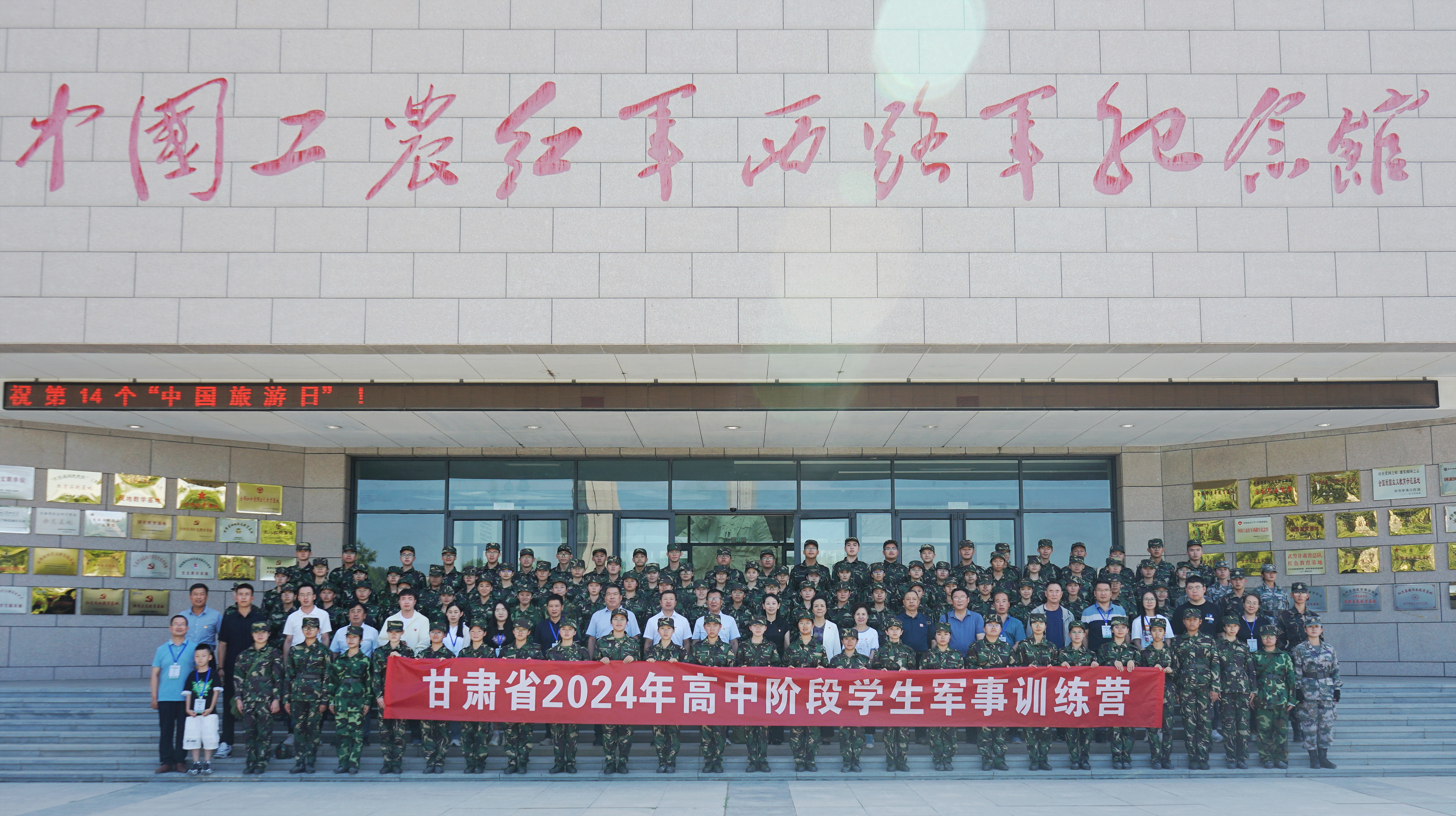 为深入贯彻习近平强军思想,推动学生军事训练工作高质量发展,7月17日上午,由省教育厅主办、酒泉市教育局承办、酒泉职业技术学院协办的“2024年全省高中阶段学生军事训练营”开营仪式在中国工农红军西路军纪念馆举办。甘肃省教育厅体育卫生与艺术教育处处长张捷,酒泉市委教育工委委员、市教育局一级调研员赵志俊,酒泉职业技术学院党委委员、副校长王金明一行出席开营仪式。来自全省14个市州、厅直和兰州新区学校学生代表及带队老师、酒泉职业技术学院国防教育学院教官代表参加了开营仪式。