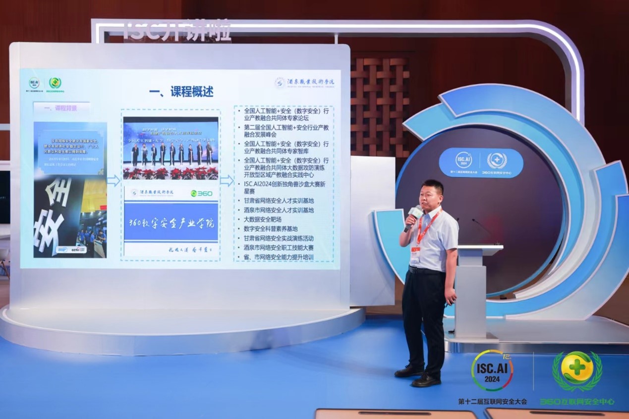在数字安全产教融合生态展上,大会对我校全国人工智能+安全(数字安全)行业产教融合共同体及360数字安全产业学院等产教融合建设成果进行了持续宣传。作为ISC打造的一项特色IP活动,我校在“ISC开讲啦”活动中对产教融合课程《网络安全管理与实践》进行了公开演讲交流。8月1日,ISC.AI 2024创新独角兽沙盒大赛巅峰对决圆满落下帷幕,作为大赛发起及启动单位之一,我校作为特邀嘉宾在ISC.AI 2024创新独角兽沙盒大赛新星赛上为获奖选手进行了颁奖。(信息员:电子与信息工程学院 孙涛)