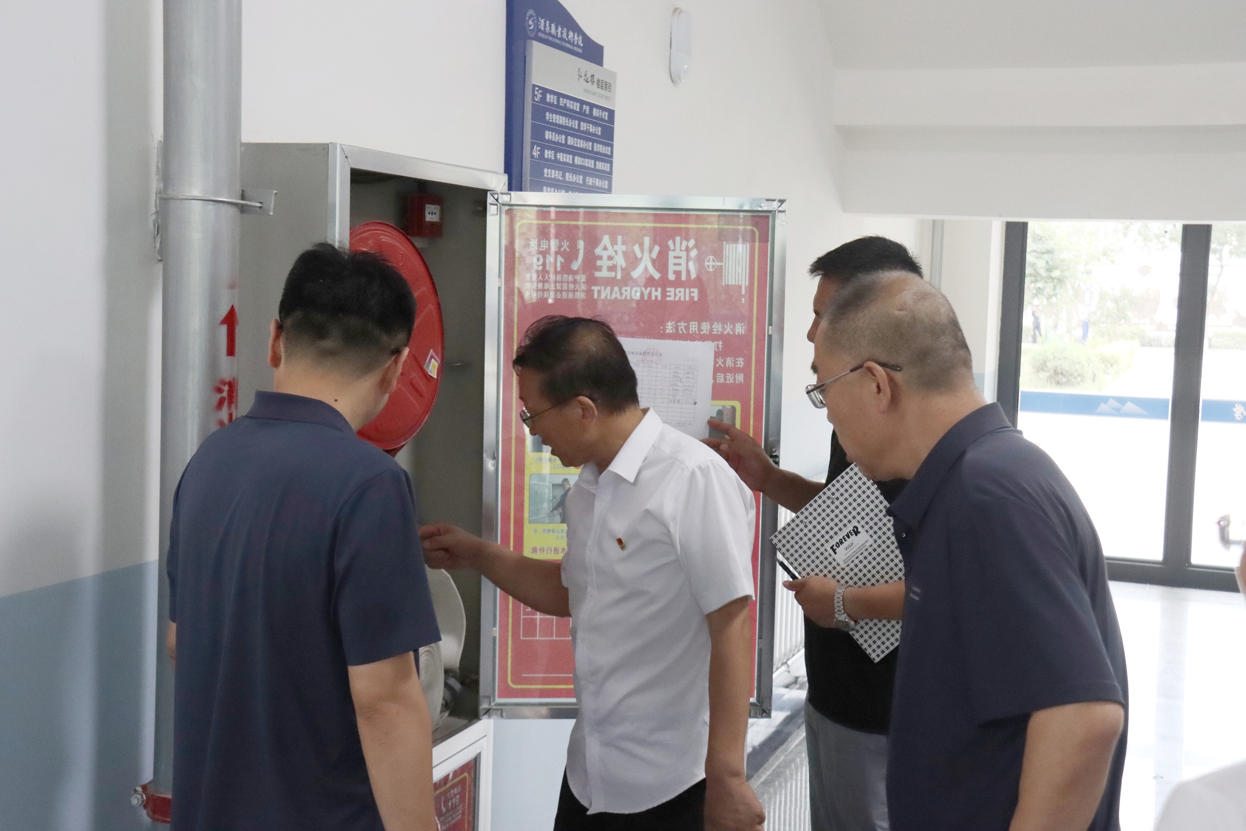 在学校西大门,检查了校园安保设施和人员配备情况,检查组强调要严格落实门禁制度,加强对进出人员和车辆的管理,确保校园第一道防线的安全。在格物楼、弘远楼、明理楼、明德楼、经世楼和弘毅楼等教学区域,检查组仔细查看了教室门窗、桌椅和电气等设施设备、消防器材以及疏散通道,确保教学设施完好无损,为师生提供安全舒适的教学环境,并要求各班级在开学第一课中加强安全教育,提高学生的安全意识和自我保护能力。