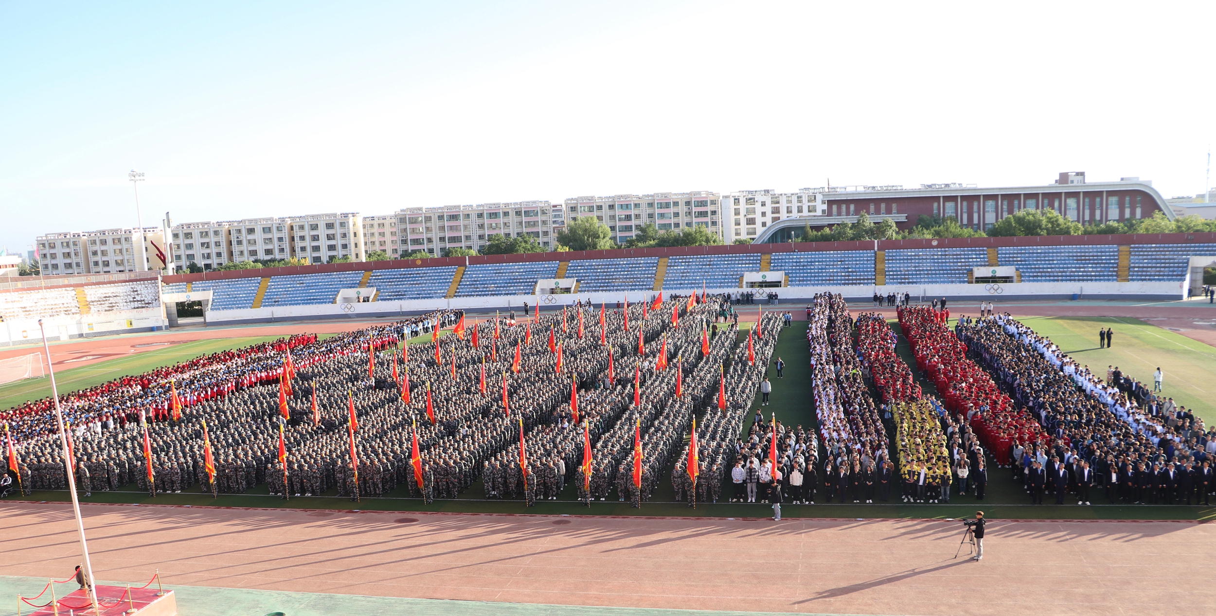 要闻快递 > 正文四时俱可喜,最好初秋时。2024年9月13日,学校举办2024级新生开学典礼暨军训动员大会。党委书记易志军、党委副书记、校长许军,承训单位西部战区94005部队邹超上尉、西部战区96111部队王峥中尉、兰州理工大学新能源学院党委书记、副院长王胜强,以及其他校党委领导班子成员出席大会。党委委员、副校长王金明主持大会。全体师生参加大会。
