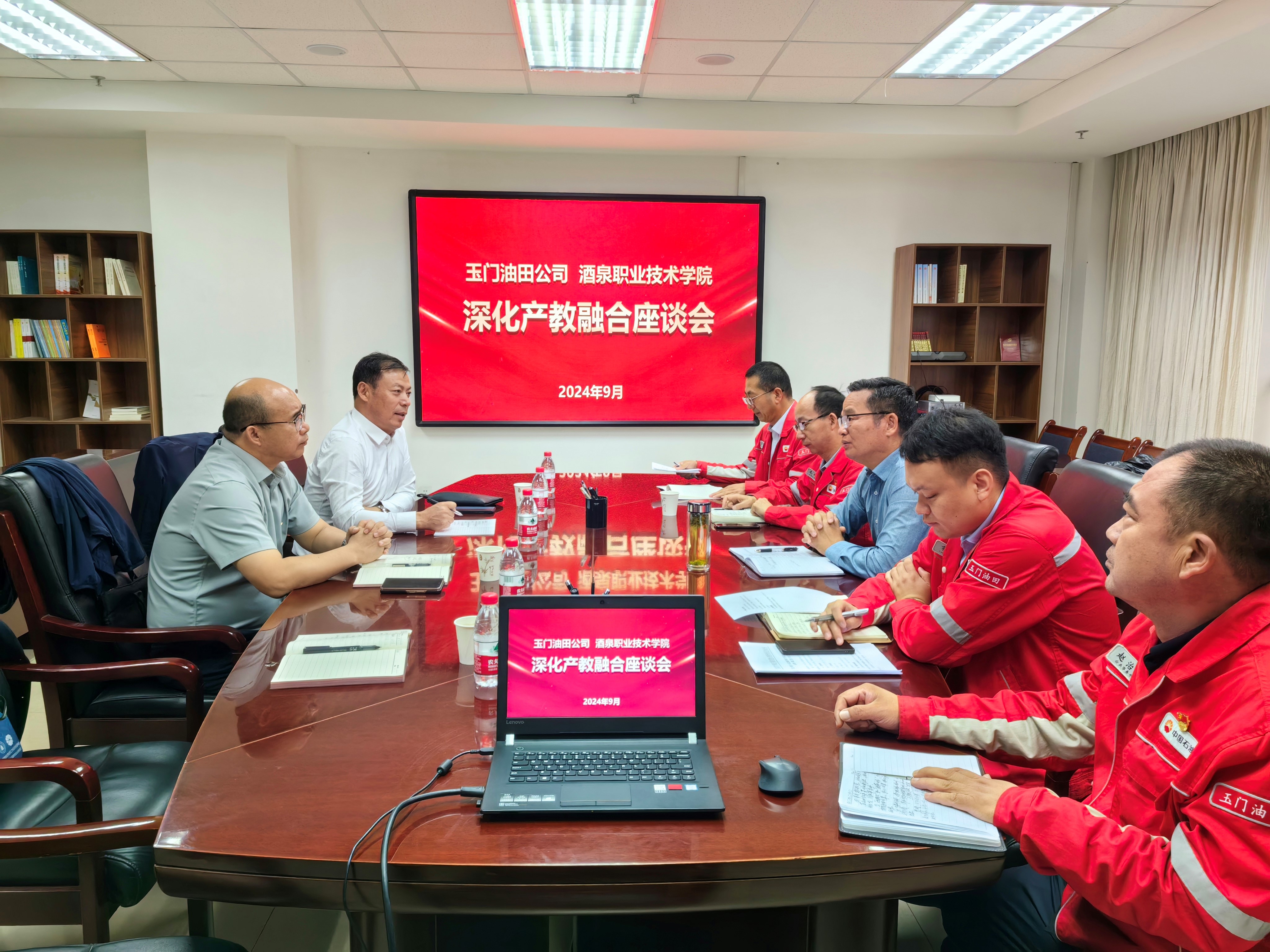 2024年9月19日上午,学校党委委员、副校长杨洁带领合作发展处、化工学院负责人前往中石油玉门油田分公司开展企业走访调研活动。油田公司人事处(组织部)孙峻部长热情接待,并组织召开了深化产教融合座谈会。