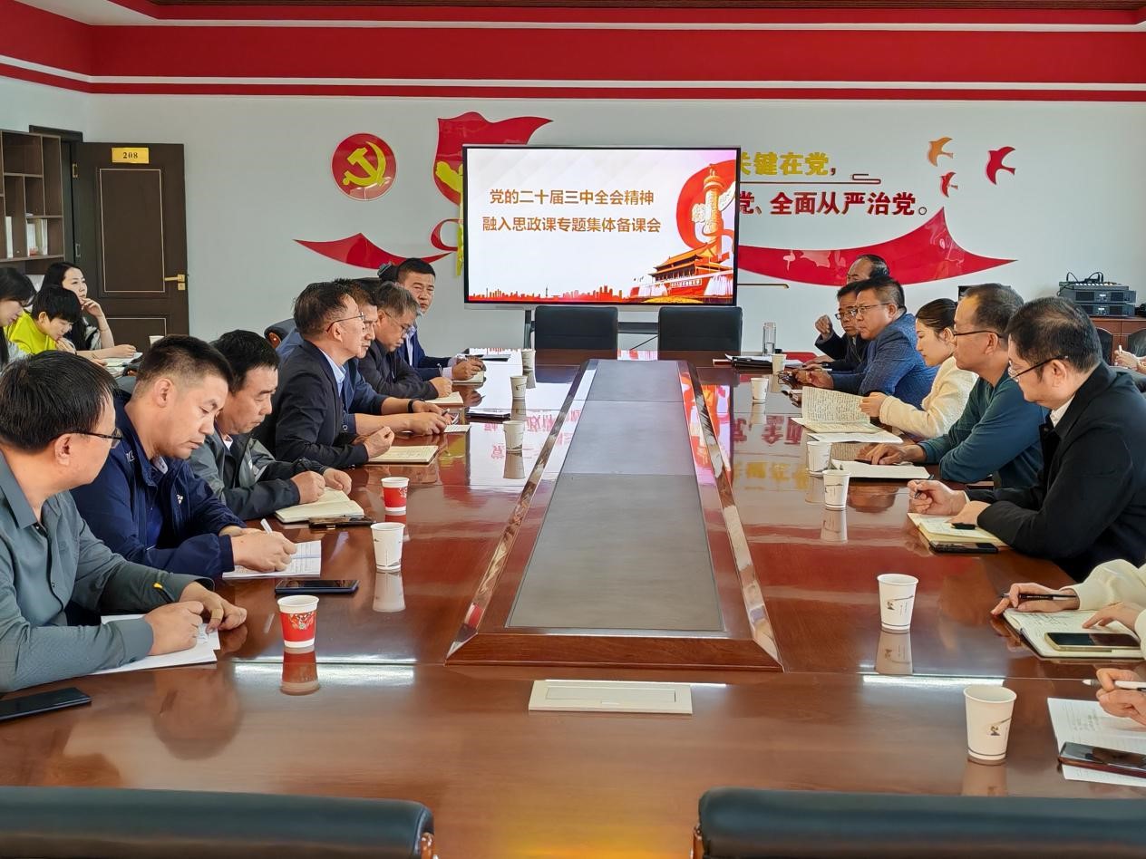 要闻快递 > 正文为深入学习宣传贯彻党的二十届三中全会精神,确保会议精神内涵和指导思想能够全面融入高校思政课教学。2024年9月19日下午,“党的二十届三中全会精神融入思政课”专题备课会在马克思主义学院会议室圆满举行。党委书记易志军同志、马克思主义学院负责人、各二级学院担任思政课教学的副书记、学校全体专职思政课教师以及酒泉卫校和工贸中专的思政课教师参加会议。