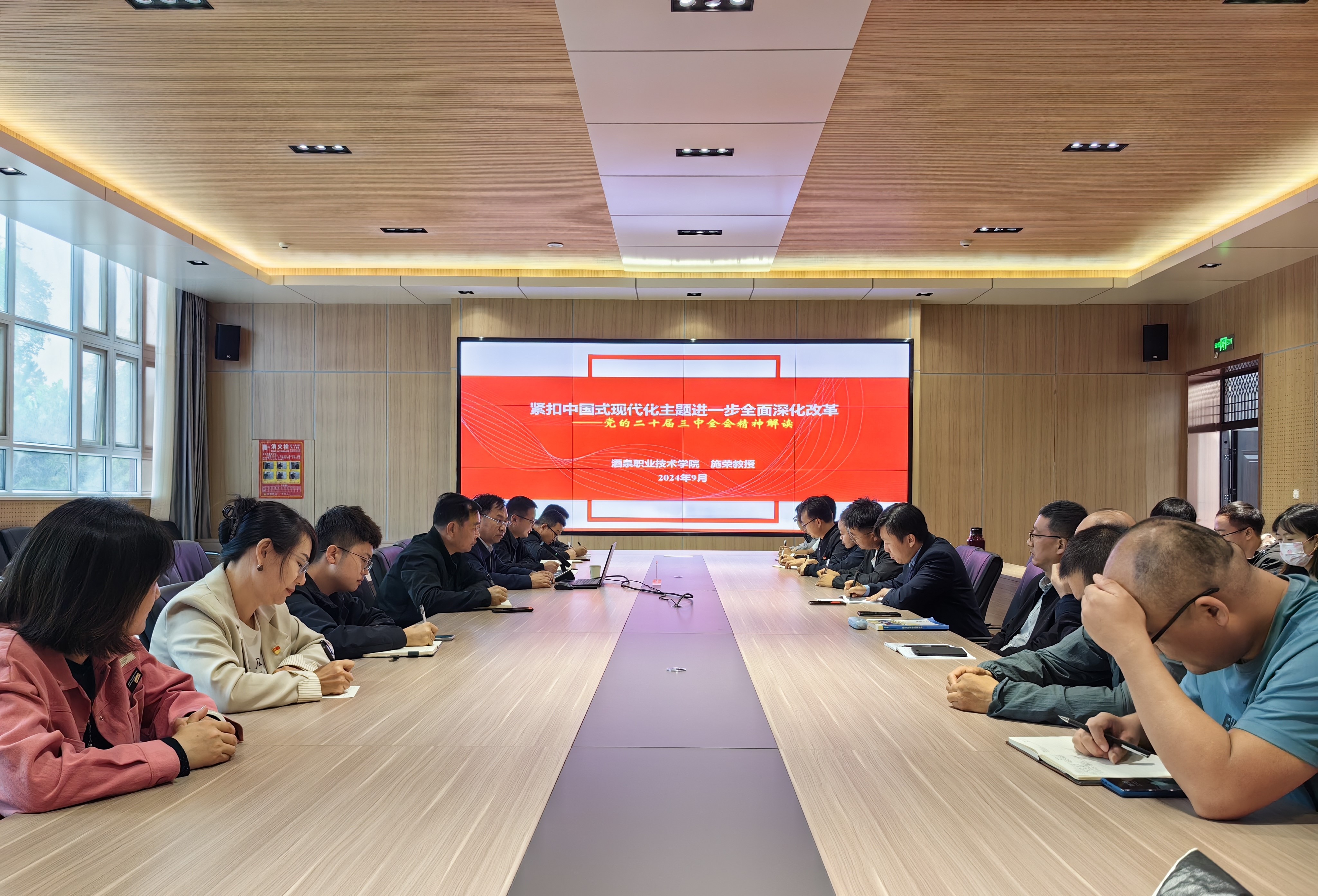 党课上,施荣教授以《紧扣中国式现代化主题进一步全面深化改革》为题,围绕“深刻认识党的二十届三中全会的主题和意义、深刻认识进一步全面深化改革的指导思想、总目标和重大原则、全面准确理解《决定》提出的进一步全面深化改革重大举措、严格落实党中央关于贯彻落实全会精神的基本要求,奋力推进中国式现代化的酒职实践”四个方面,对党的二十届三中全会的丰富内涵和精神实质进行了全面细致的解读。施荣教授结合学院实际工作强调,要持续深入学习贯彻党的二十届三中全会精神,提高政治站位,要加强党对进一步全面深化学院改革全过程领导,聚焦重大部署、重要任务、重点工作,深入研究推进学院人才培养模式、专业建设、学科发展、实训基地建设、教师培养、智能建造中心谋划等各项改革任务落地见效。