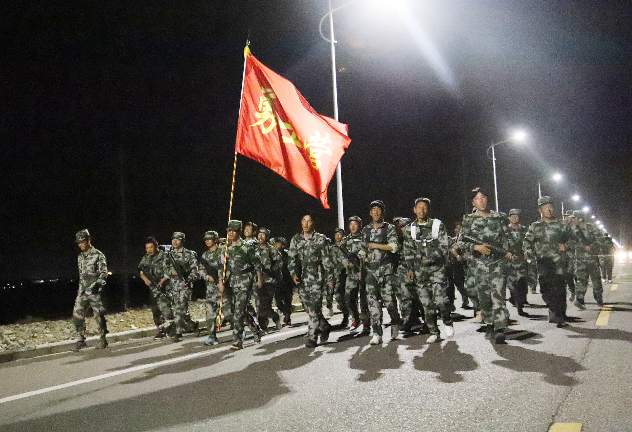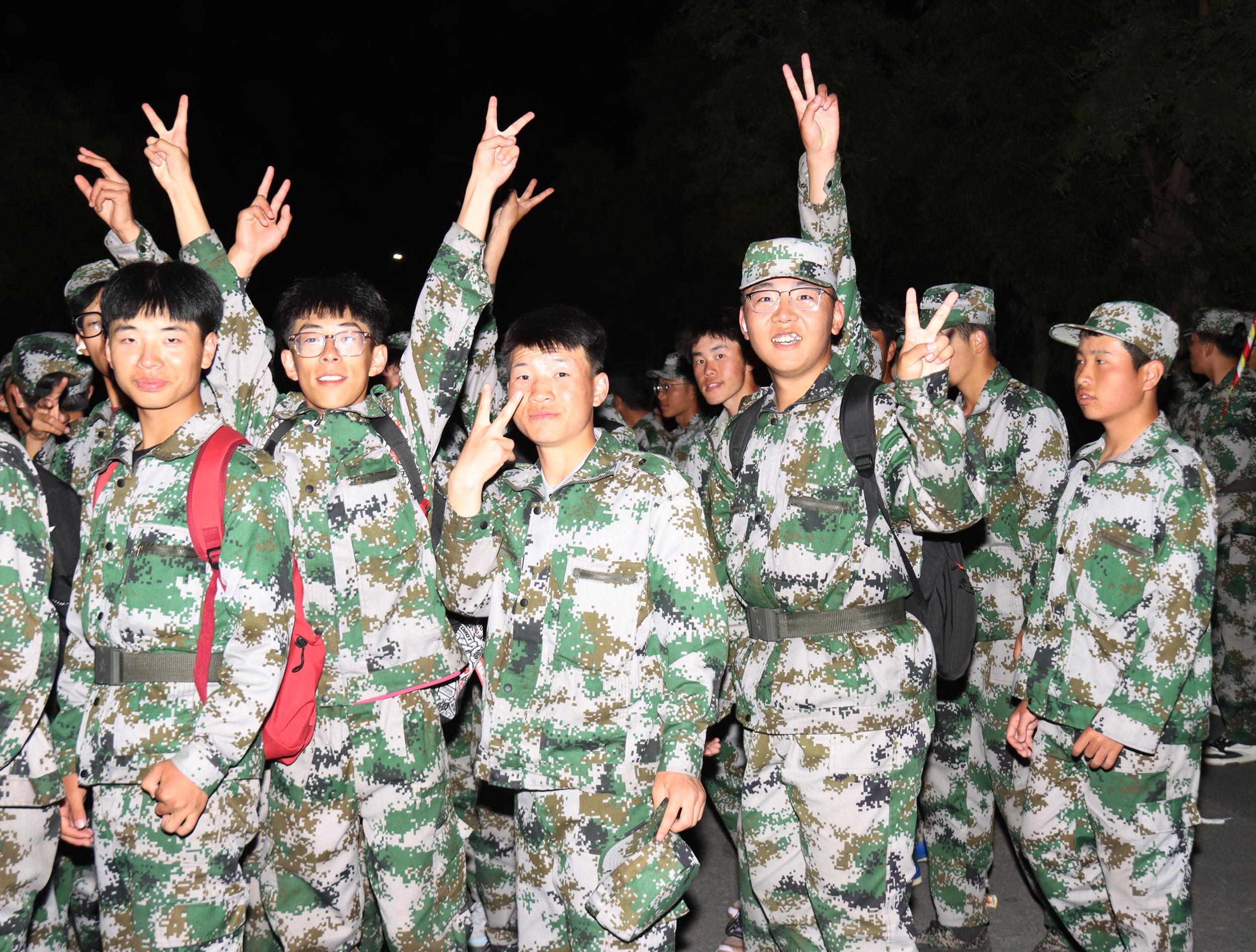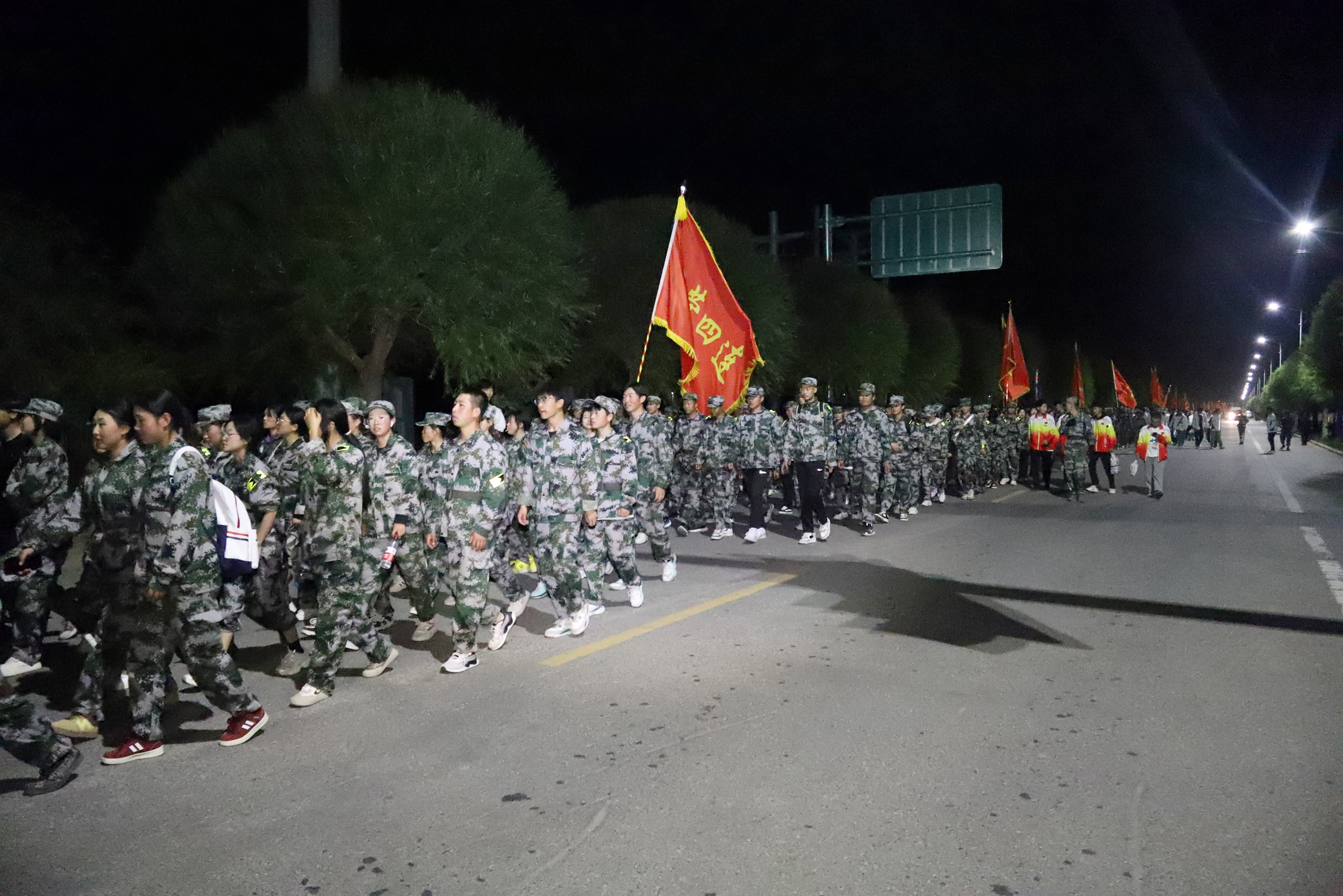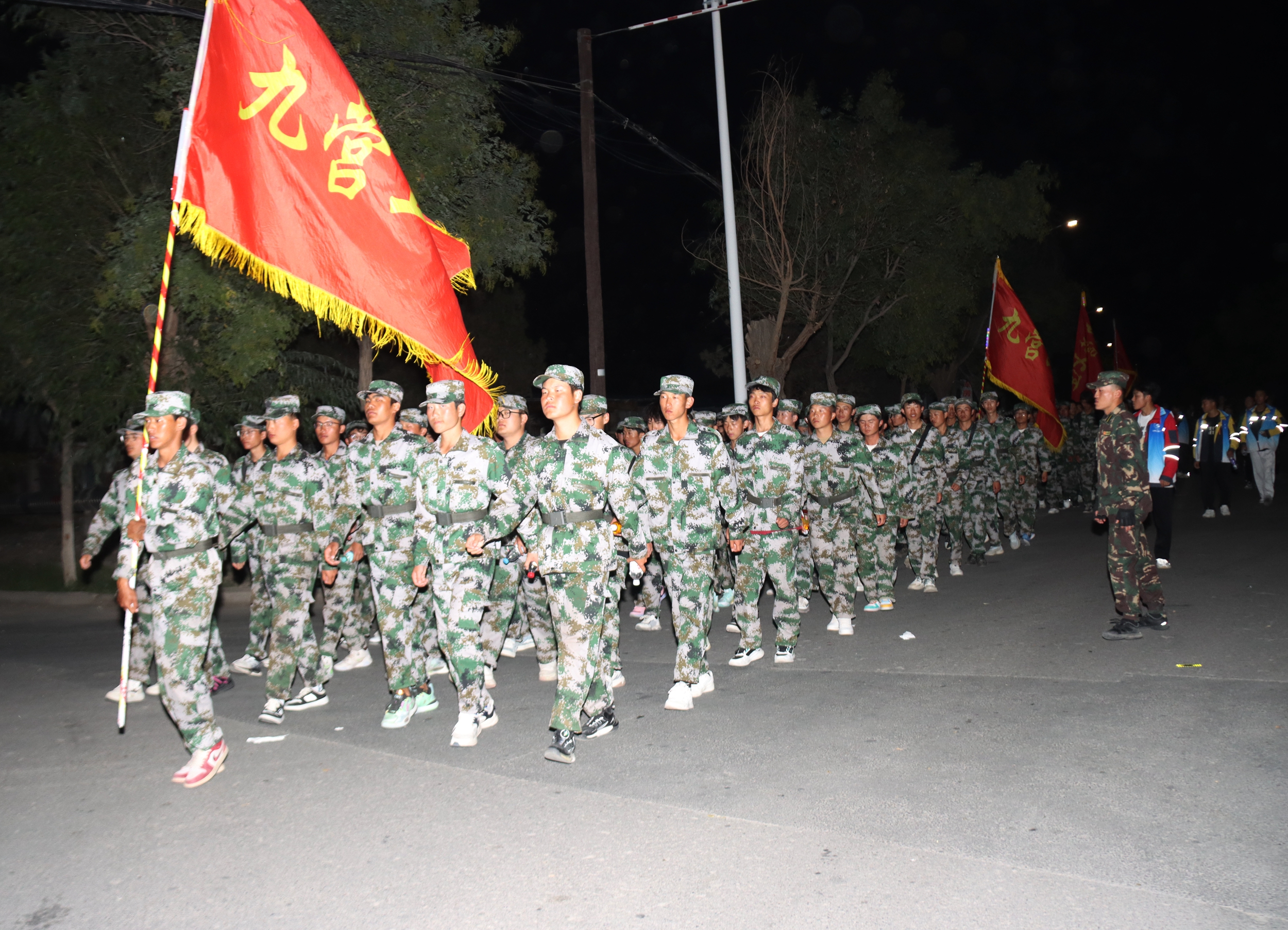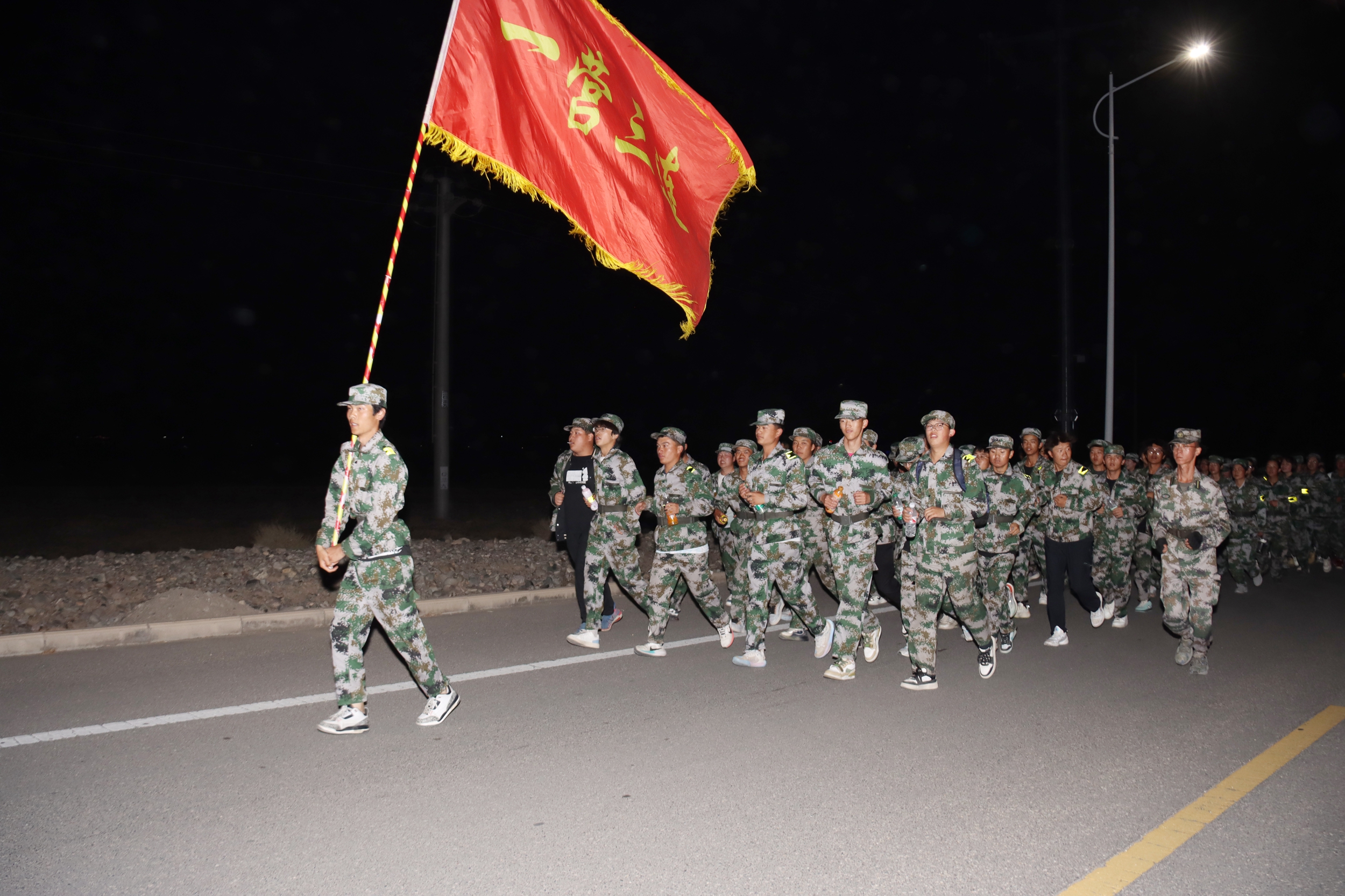 随后,集结列队,在教官的带领下,同学们整装出发,开始了13公里的军训夜间拉练。同学们身着整齐的迷彩服,身姿挺拔,队列整齐地行进在夜色中,脚步沉稳而有力。一路上,歌声不断,一首首激昂的军歌,如同冲锋的号角,激励着大家奋勇前行。他们用歌声驱散了黑夜的恐惧,用团结的力量战胜了疲惫与困难。