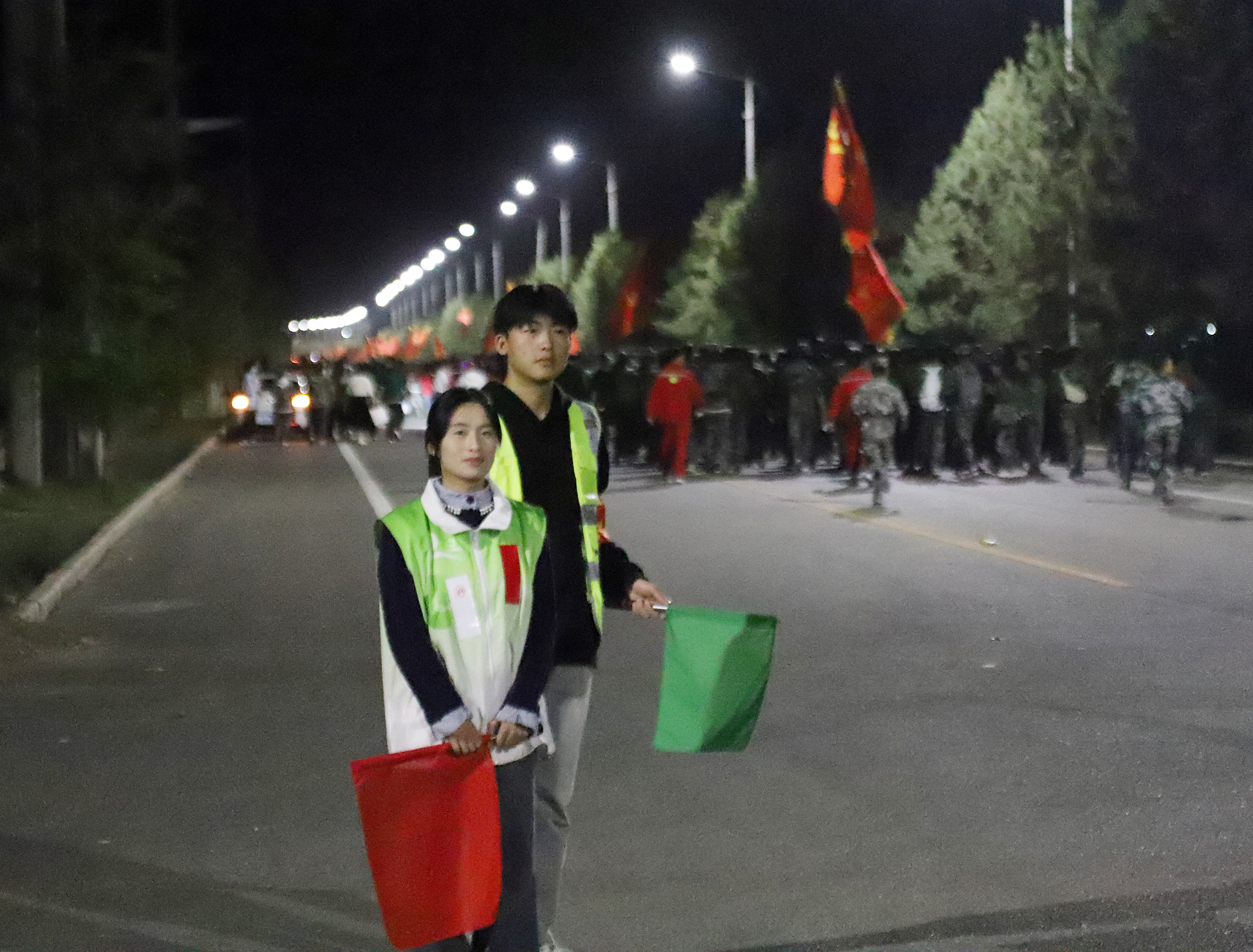 为了确保此次军训夜间拉练顺利进行,学校多次召开协调会,研究制定行军拉练路线,排查沿途风险点位,设置训练科目。酒泉市公安局肃州分局交警大队、治安大队、火车站派出所均派出警力,维护沿途交通秩序,承担全程勤务安保,全力保障师生安全出行。方舟救援队派出应急保障车辆,为应对各种突发状况提供了坚实保障。