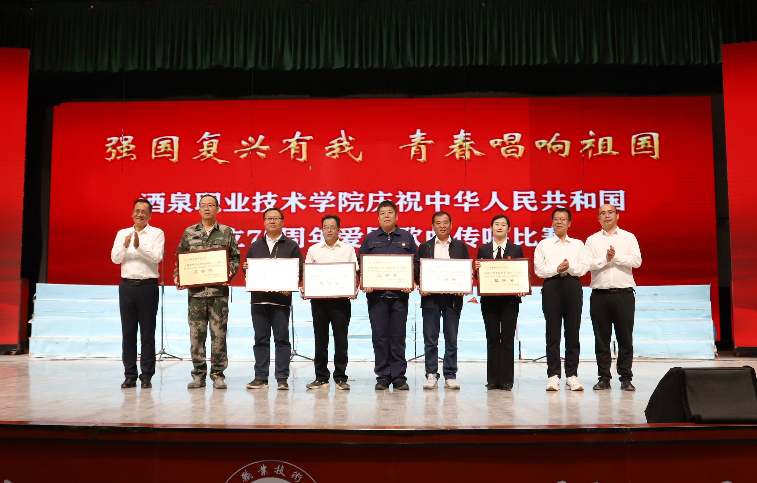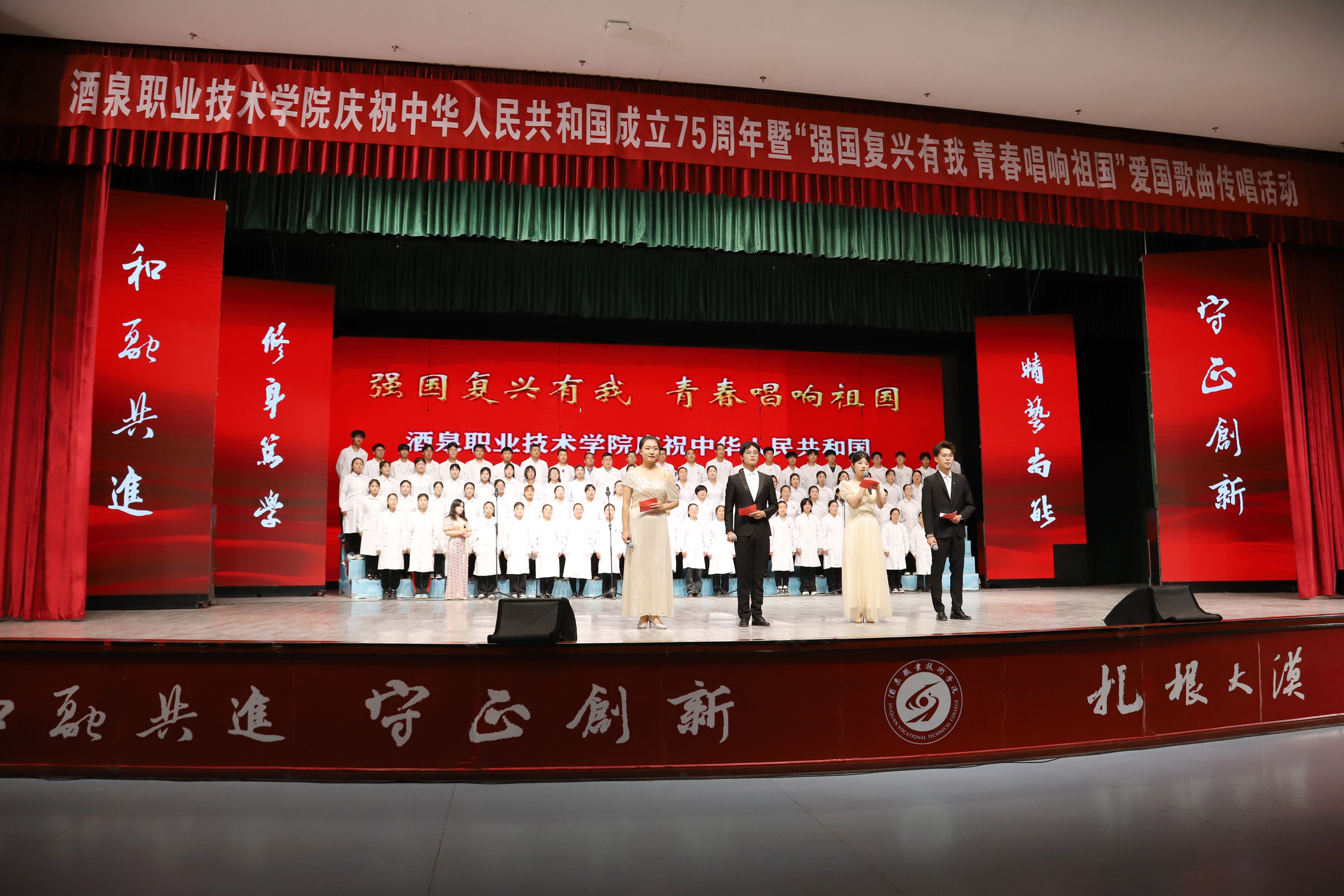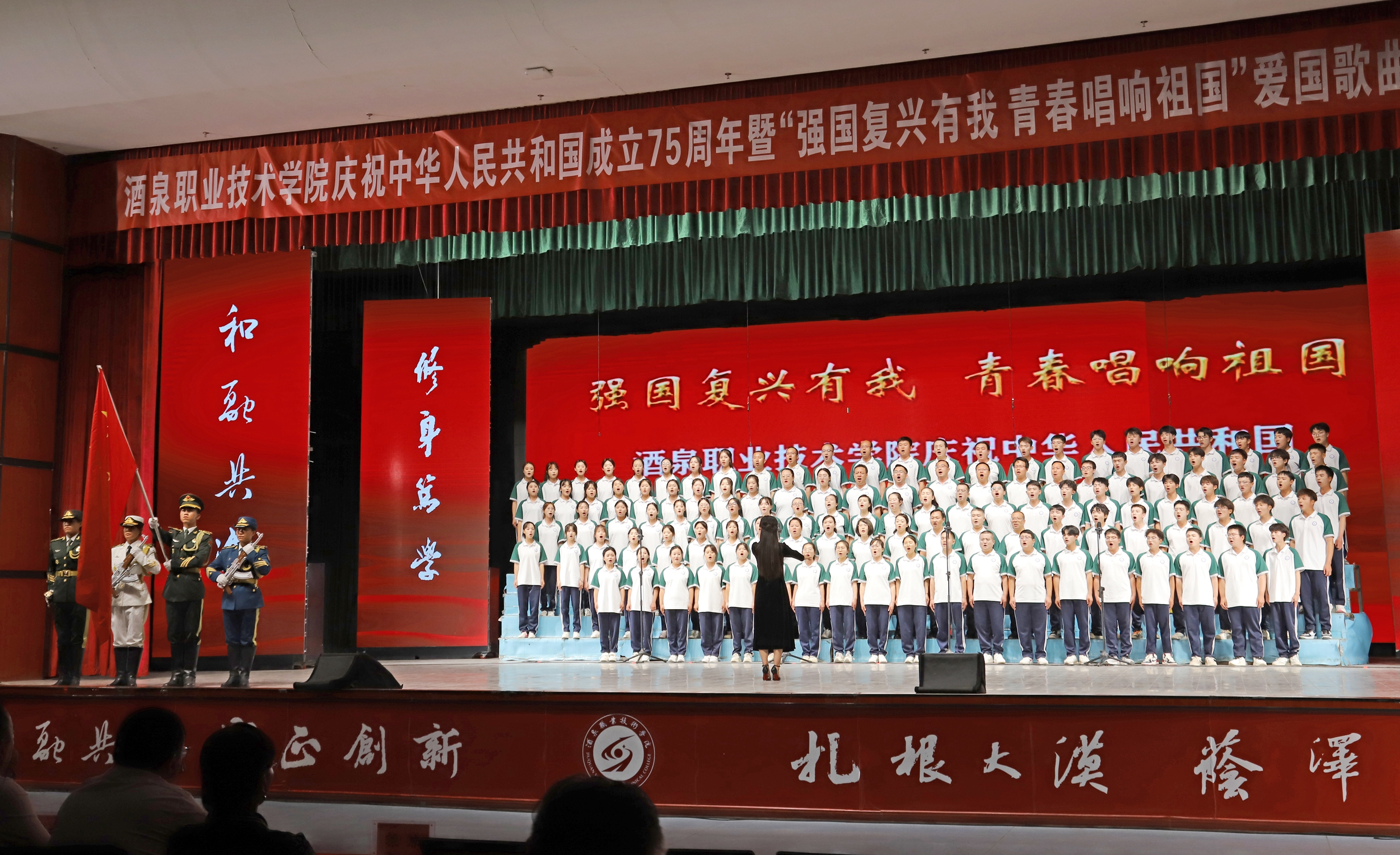 为庆祝中华人民共和国成立75周年,深入学习贯彻习近平新时代中国特色社会主义思想,认真贯彻落实习近平总书记对学校思政课建设作出的重要指示精神,贯彻落实《中华人民共和国爱国主义教育法》,激发广大师生的爱国热情,弘扬爱国主义精神,繁荣校园文化。2024年9月27日晚,学校举办庆祝中华人民共和国成立75周年暨“强国复兴有我 青春唱响祖国”爱国歌曲传唱活动,展现酒职师生蓬勃向上的精神风貌,唱响时代主旋律。校党委领导班子成员和师生代表参加活动。