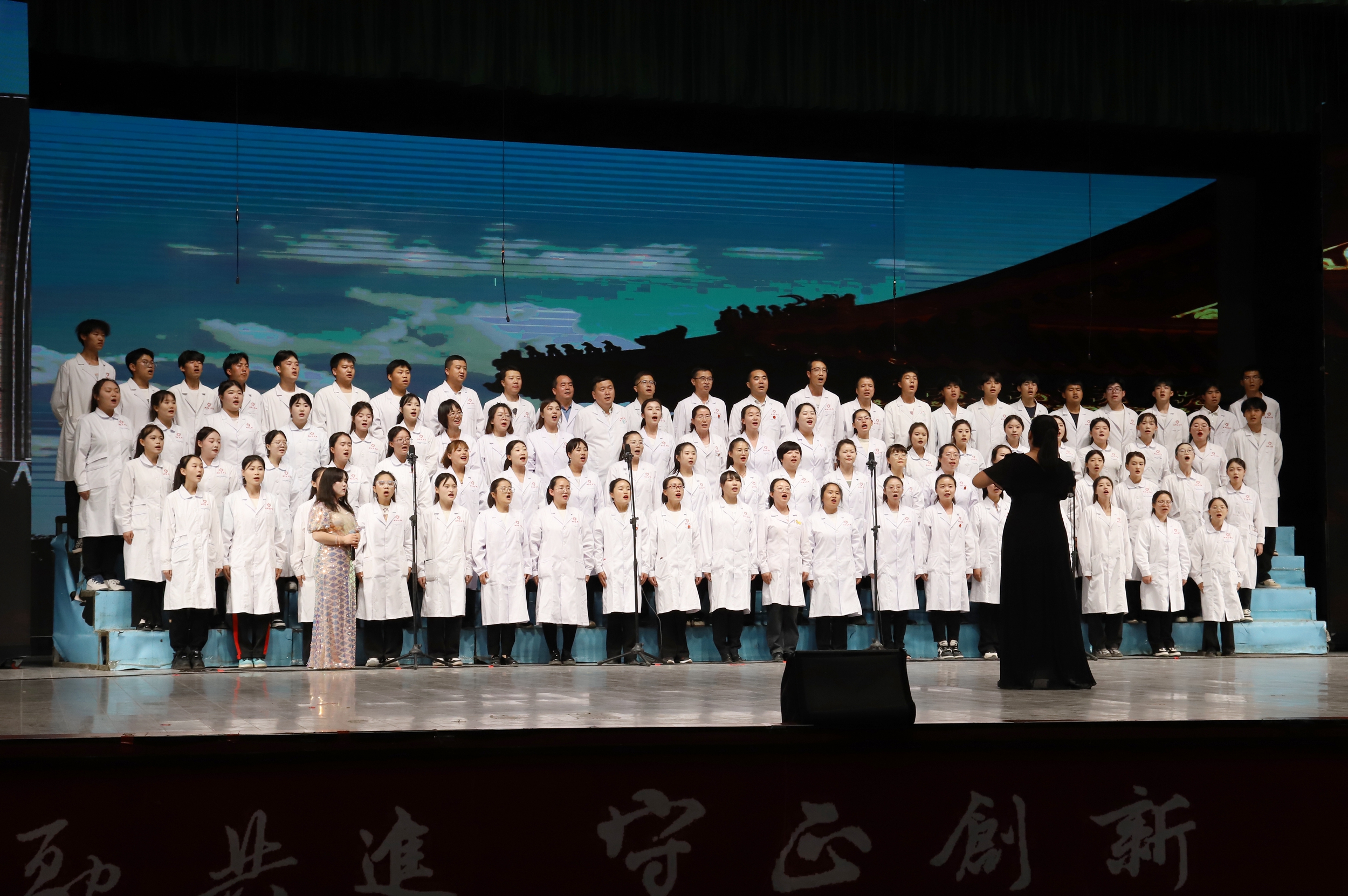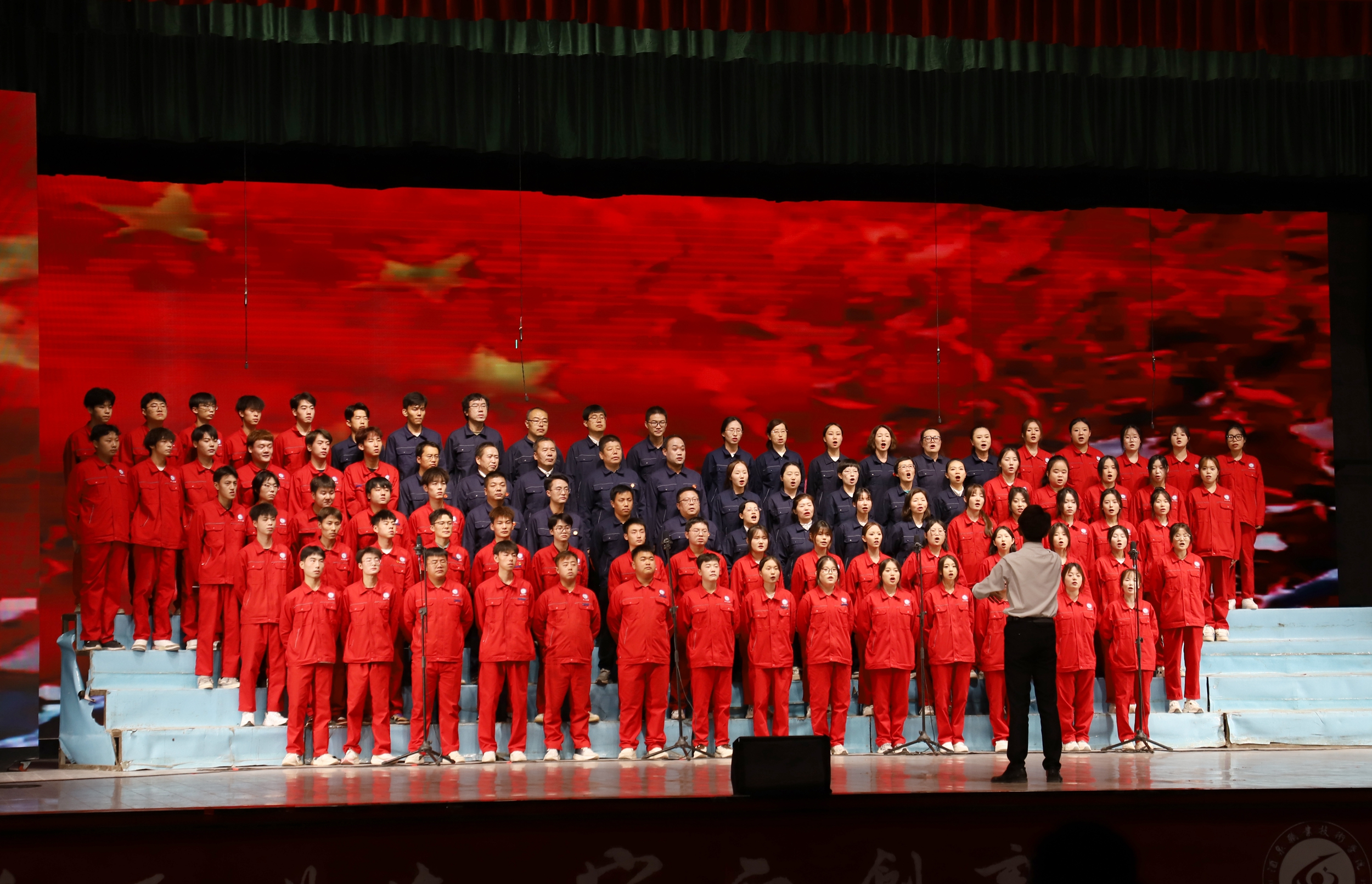整个舞台灯光璀璨、流光溢彩,12支参赛队伍精神饱满,热情和真挚的情感演绎了一曲曲昂扬向上的旋律。《壮美延安》《复兴的力量》《歌唱祖国》《我的中国心》《爱我中华》等歌曲,表达了对党的忠诚与热爱,更表达了对伟大祖国的深情祝福和对美好生活的无限向往。比赛现场高潮迭起、气氛热烈, 一首首经典歌曲,诉说着百年岁月的奋斗征程;一声声熟悉的旋律,吟唱着难忘的光辉岁月,新颖的编排、磅礴的气势、饱满的热情展现了新时代酒职师生昂扬向上的精神风貌。