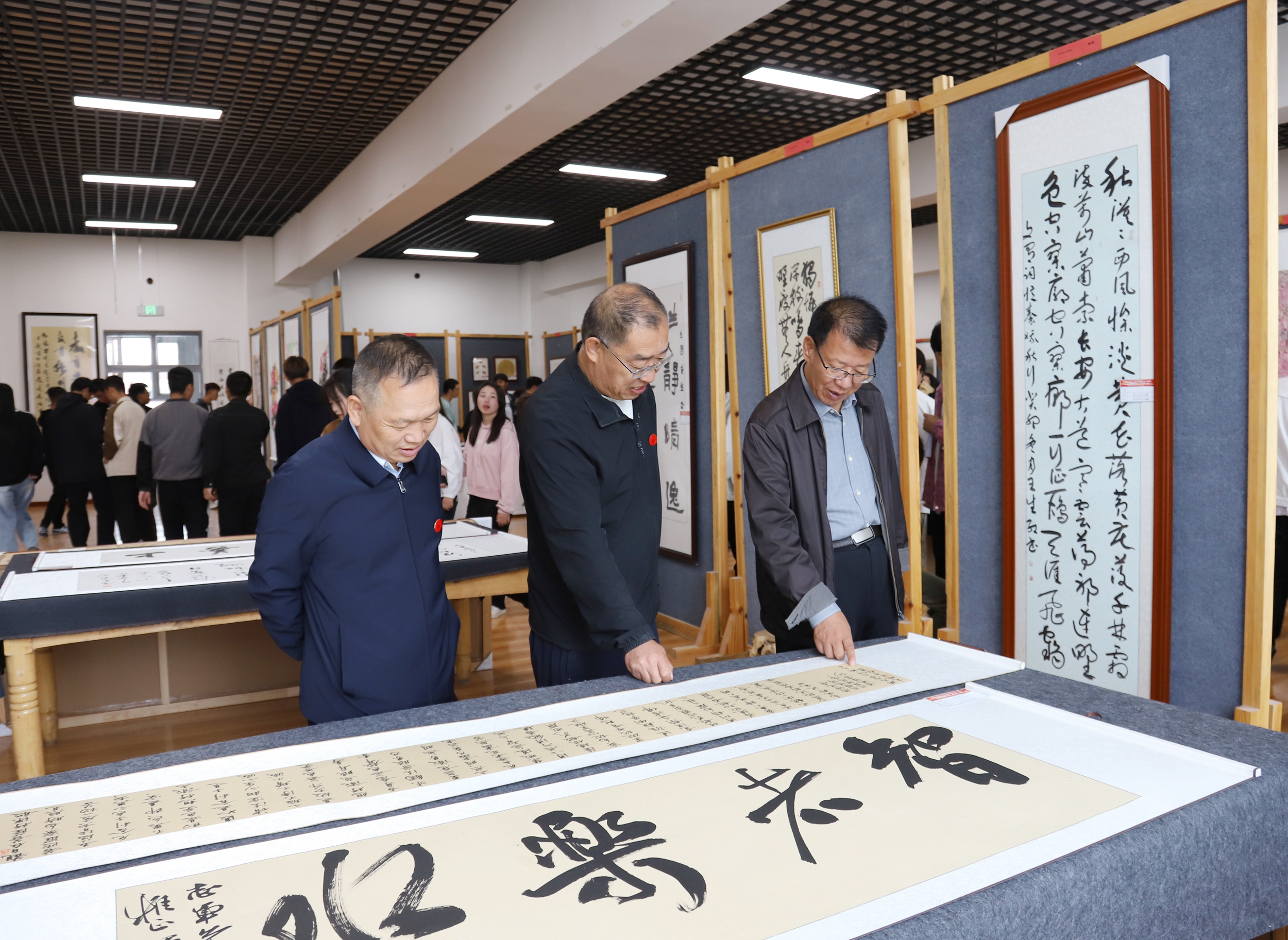 书画展共展出师生创作和个人典藏的书画精品100余幅,其中包含了以贾平凹、陈士众为代表的当代著名书画家、教育家、文学家、国学学者的书画精品,让我们身临其境的感受到了中国书画艺术的神奇魅力,也充分展现了我校师生较高的收藏品味和审美水平,抒发了我校师生奋进新征程、建功新时代、谱写新篇章的豪情壮志。