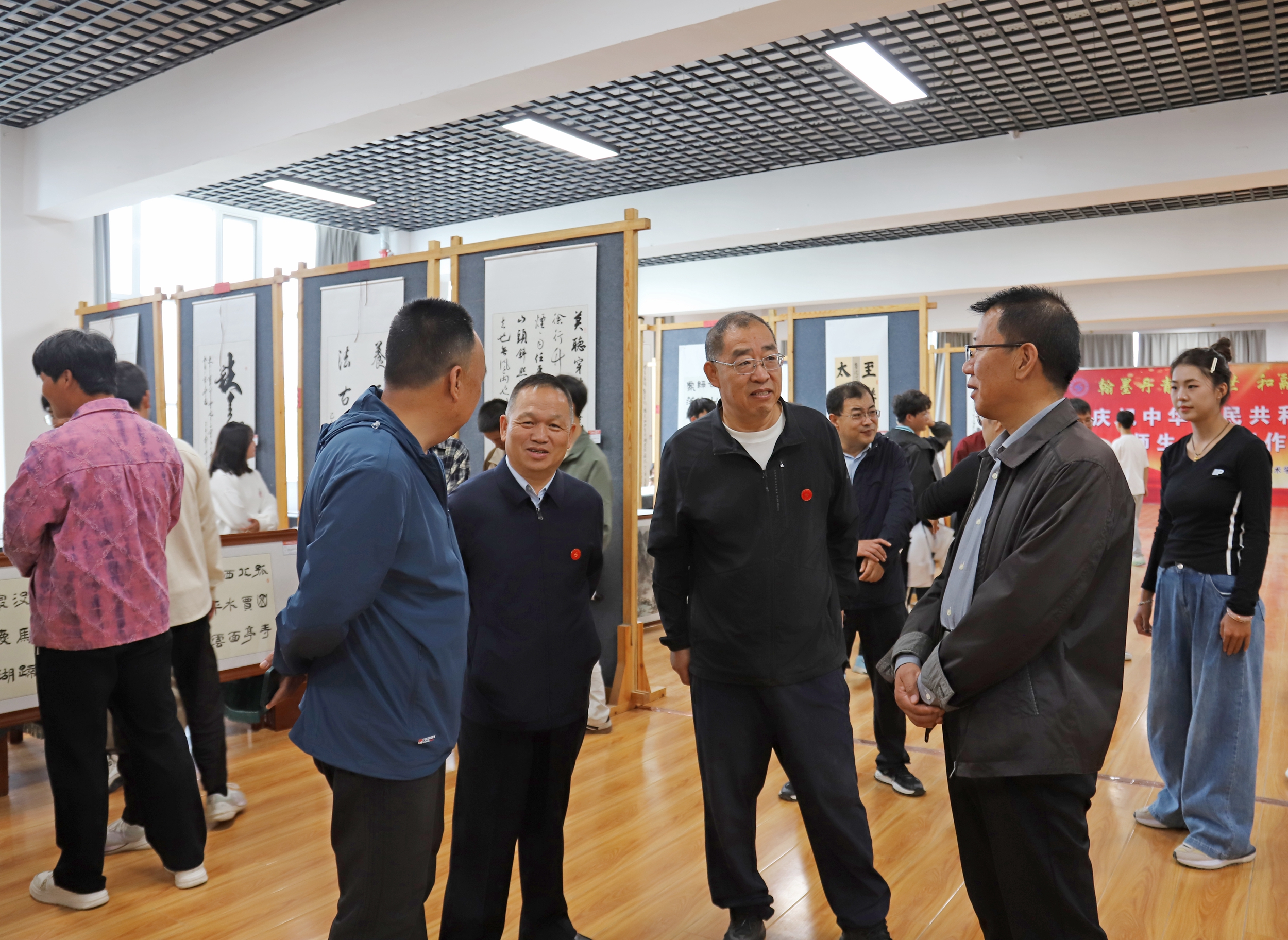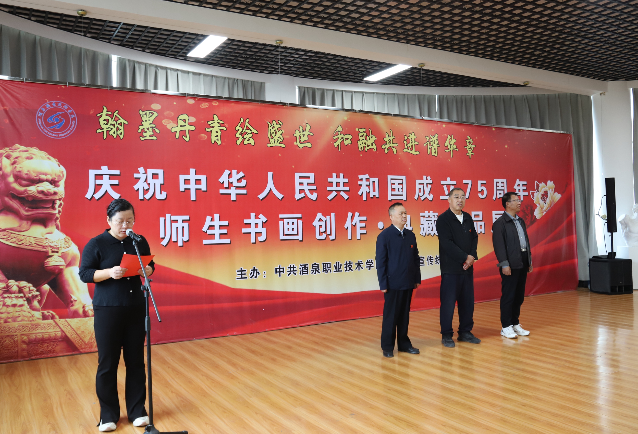 丹青绘盛世,翰墨庆华诞。2024年9月28日,学校庆祝中华人民共和国成立75周年师生书画创作、典藏作品展在飞天书画院开幕。党委副书记、校长许军,党委副书记王立智,党委委员、副校长王金明出席开幕式。