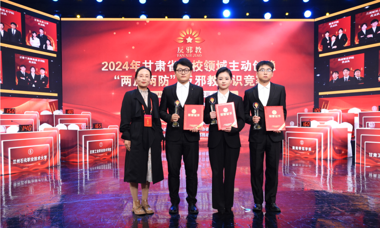 2024年10月16日,甘肃省高校领域主动创稳“两反两防”反邪教知识竞赛在甘肃省广播电视总台演播大厅举行。经过层层选拔与激烈角逐,酒泉职业技术学院代表队凭借出色的表现和扎实的知识,荣获本次竞赛三等奖,学校荣获优秀组织奖,充分展现了学校在反邪教宣传教育方面的显著成效。