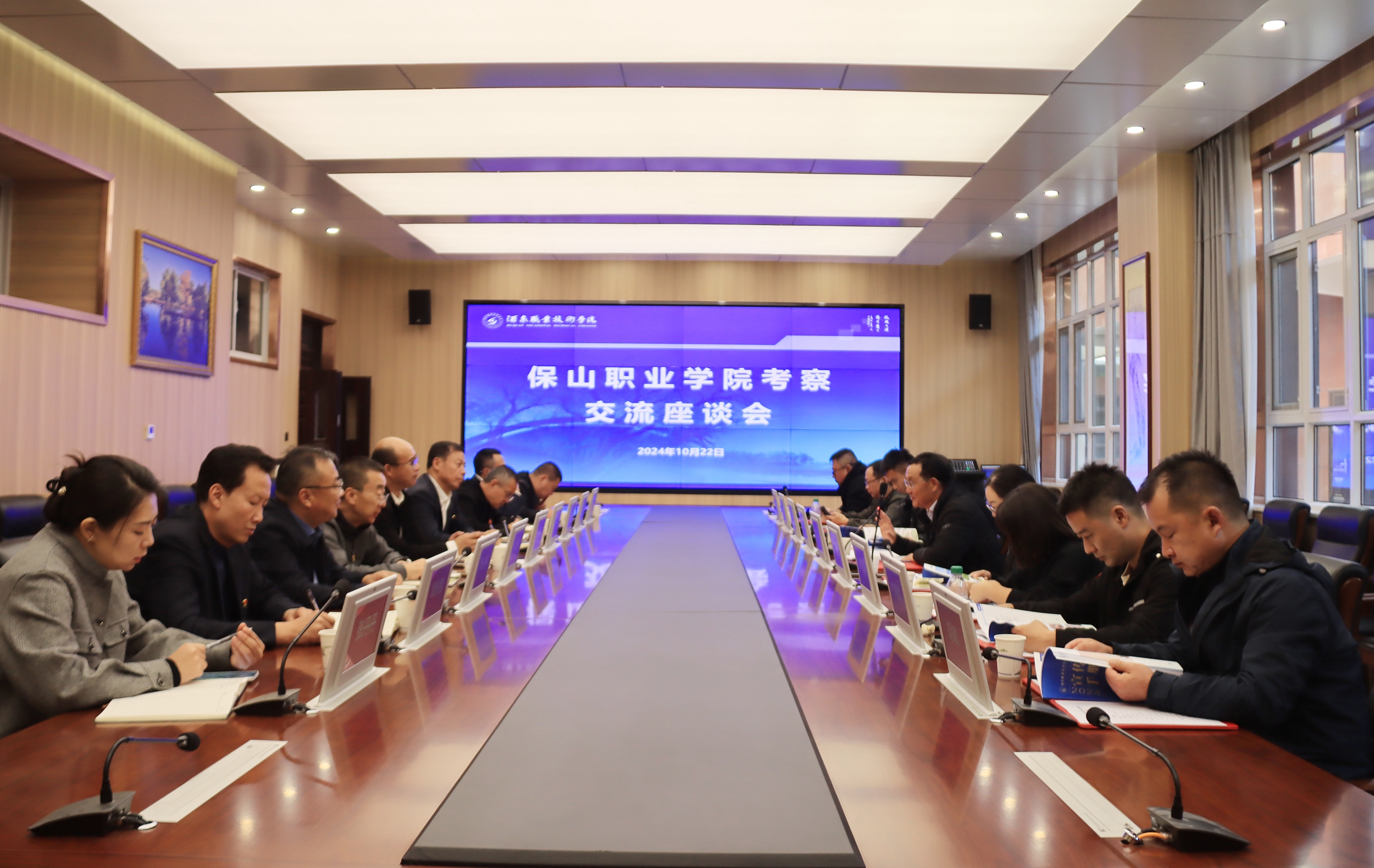 2024年10月22日,保山职业学院党委书记吉超贤一行9人来我校考察交流。学校党委书记易志军,党委委员、副校长杨洁陪同考察。