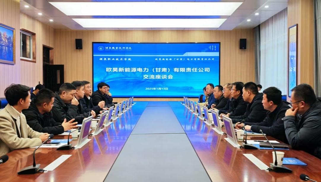 2025年1月13日,欧昊新能源电力(甘肃)有限责任公司副总裁宋叶一行8人来我校考察交流。酒泉职业技术学院党委副书记、校长许军,党委委员、副校长王金明出席了座谈交流会。科研处、新能源研究院、新能源工程学院、机电工程学院、化工学院分管科研负责人及胡杨科技创新团队负责人参加座谈交流。