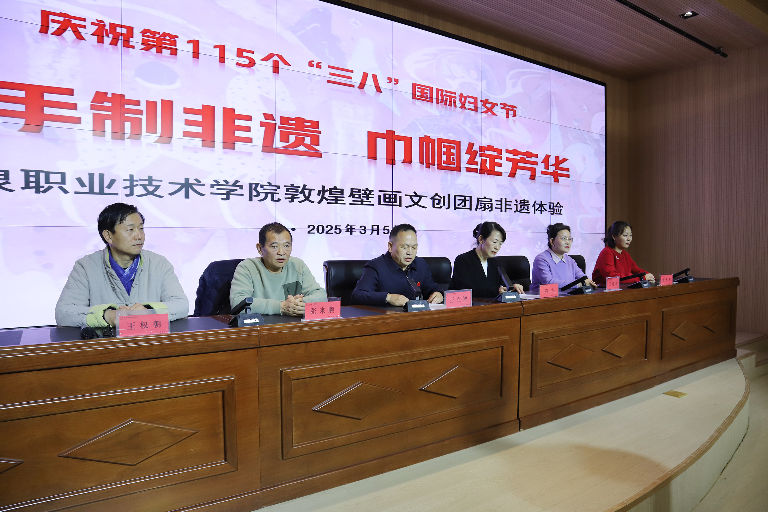 要闻快递 > 正文在第115个“三八”国际劳动妇女节来临之际,为丰富女职工业余文化生活,提升艺术修养,传承中华优秀传统文化。2025年3月5日下午,学校举办“巧手制非遗·巾帼绽芳华”敦煌壁画文创团扇制作活动。党委副书记王立智出席活动,全校女教职工参加活动。