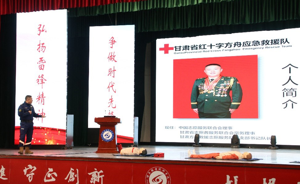 要闻快递 > 正文2025年3月5日,学校联合酒泉市红十字会,在胡杨文化活动中心举办“雷锋精神代代传承 融青春志愿行“3·5学雷锋”应急救护知识进校园主题活动。酒泉市红十字会专职副会长马正华,全国模范军人、甘肃省方舟救援队队长曲波,学校党委委员、副校长施荣出席活动。学校学生工作部、团委、各二级学院分管学生工作领导,师生代表共500余人参加活动。