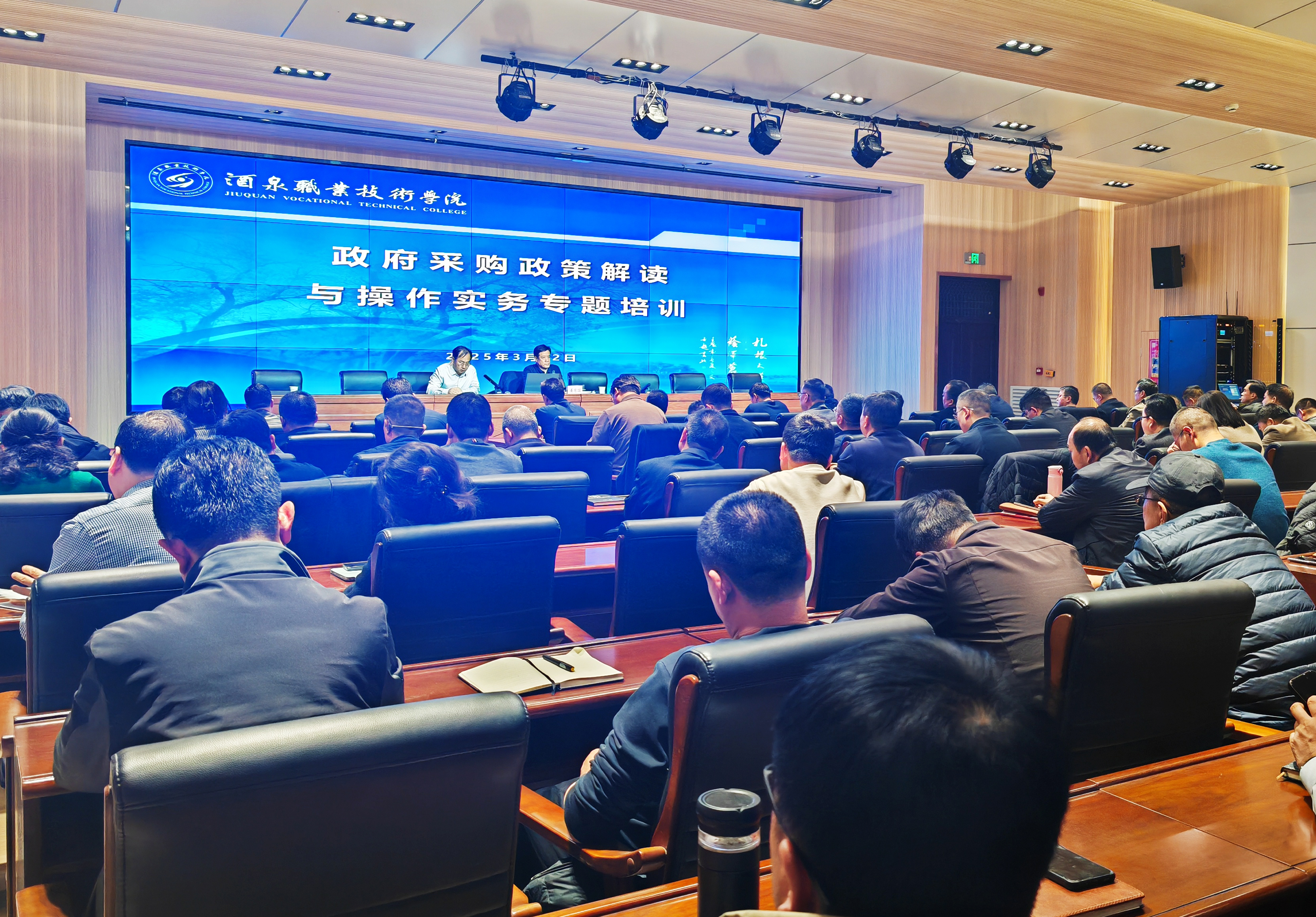 要闻快递 > 正文为深入贯彻落实政府采购法律法规及相关政策,进一步提升学校相关采购人员依法规范采购的水平和能力,强化落实主体责任意识,推动学校招标采购工作更加规范、更加廉洁、更加高效。2025年3月12日晚,学校邀请酒泉市财政局党组成员、一级调研员姜有国和酒泉市政府采购办公室主任祁建斌为全体中层干部、相关项目经办人作了政府采购政策解读与操作实务培训。学校党委委员、副校长施荣出席并主持。