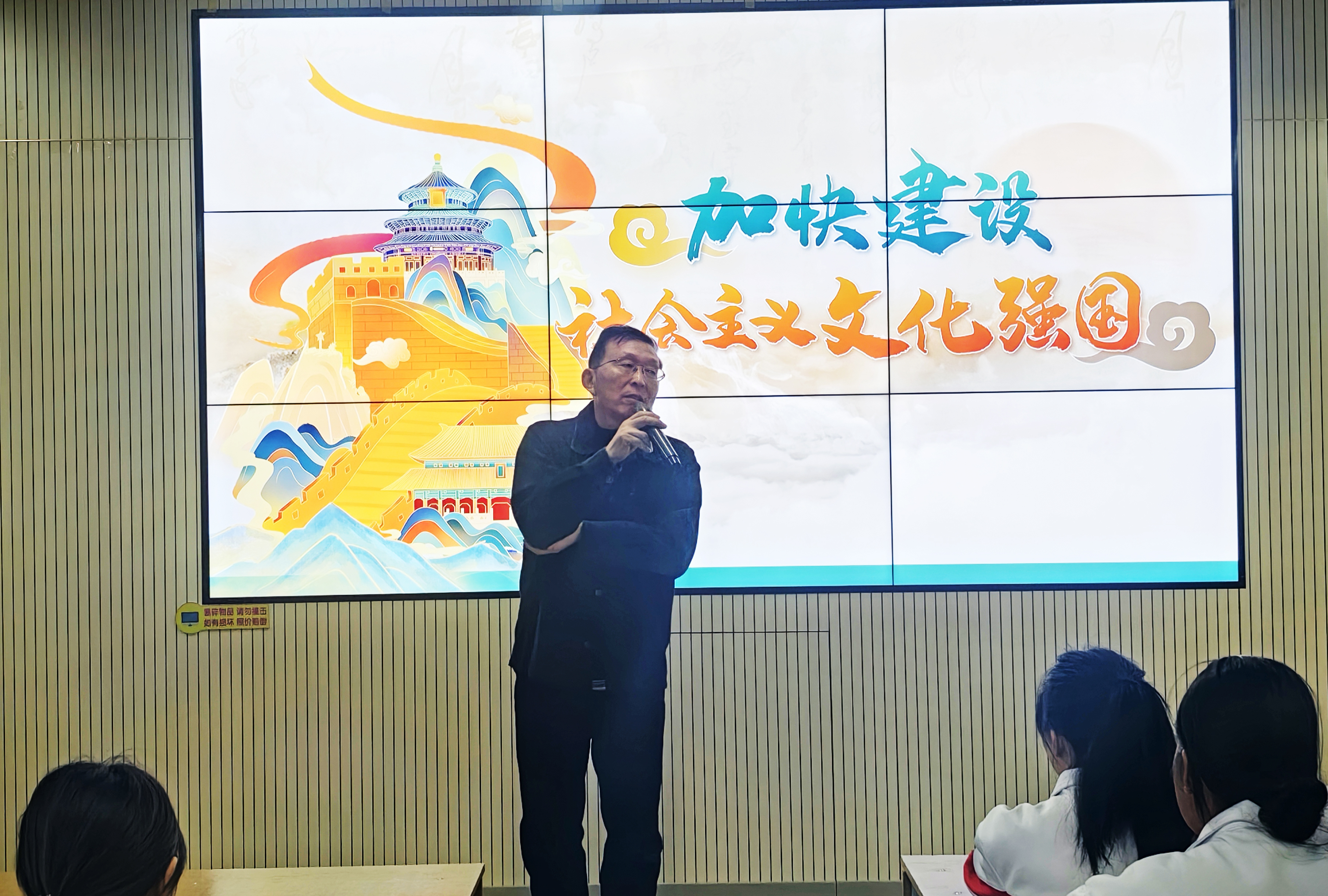 易志军引导学生理解建设社会主义文化强国的重大意义以及新时代文化建设之所以能够取得历史性成就、发生历史性变革的根本原因,号召同学们在新的起点上继续推动文化繁荣、建设文化强国,切实提高自身本领,增强社会责任感和使命感,在建设社会主义文化强国中贡献青春力量。