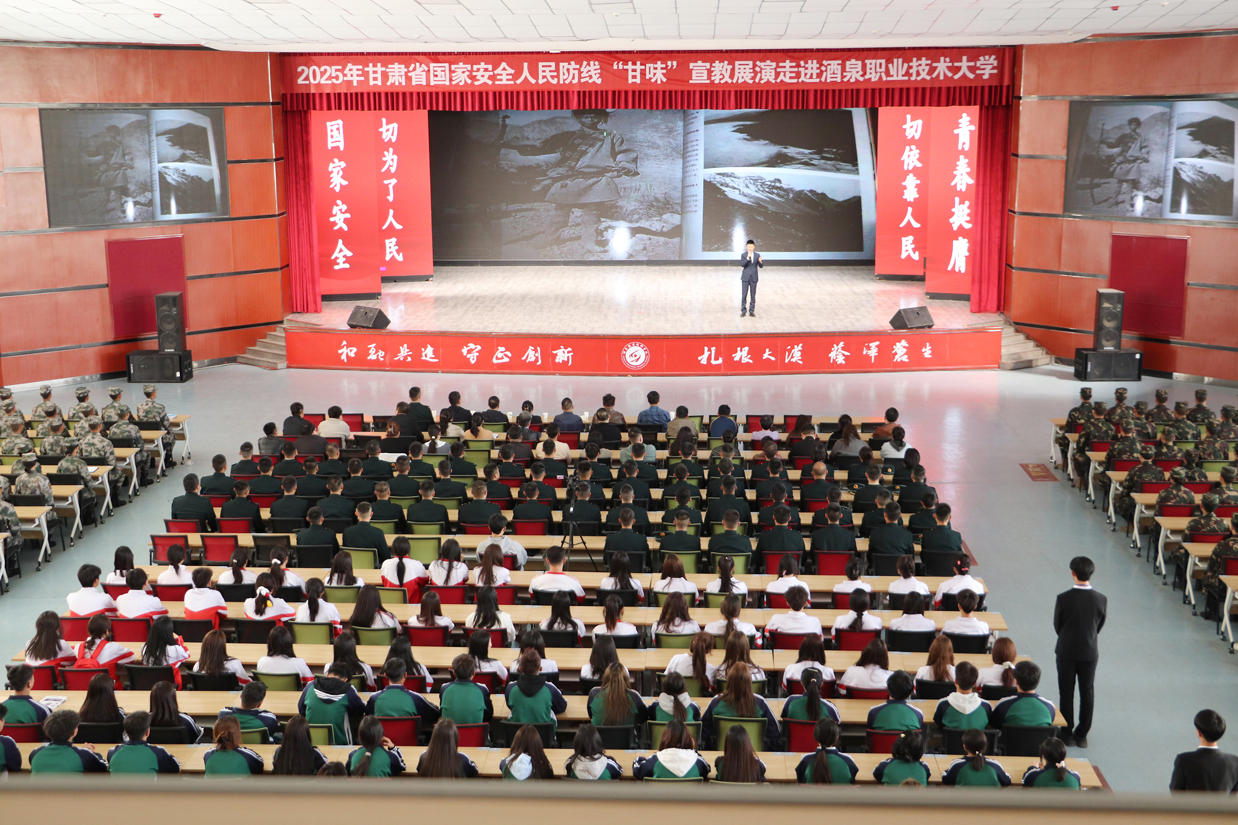 2025年4月9日,在第十个全民国家安全教育日来临之际,酒泉职业技术大学联合甘肃省国家安全厅、酒泉市国家安全局举办2025年甘肃省国家安全人民防线“甘味”宣教展演进校园活动。甘肃省国家安全厅、酒泉市国家安全局相关领导,学校党委副书记王立智,国防教育学院学员以及500余名师生代表参加本次活动。