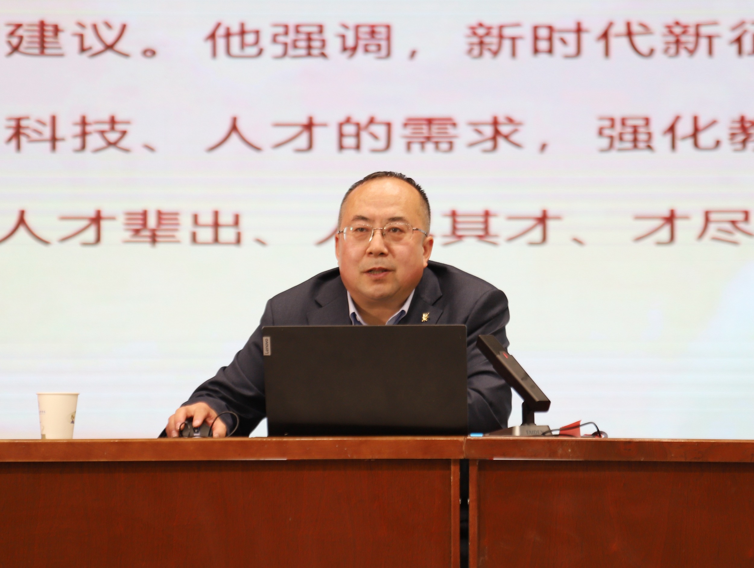 宣讲会上,顾文兵教授以《汇共识凝聚团结力量 举旗帜谱写奋进华章》为题,围绕2025年全国两会基本情况,习近平总书记在两会期间的系列重要讲话精神,2025年政府工作报告主要内容,深刻领会新时代党的创新理论、学习贯彻好全国两会精神、全面推进中国式现代化,全力推进高校高质量发展等5个方面作了深入全面系统的宣讲和阐释辅导,报告主题鲜明、站位高远,视野开阔、阐释透彻,对我校党员干部和师生深刻理解、准确领会两会精神,扎实推进学校教育教学改革具有重要指导意义。