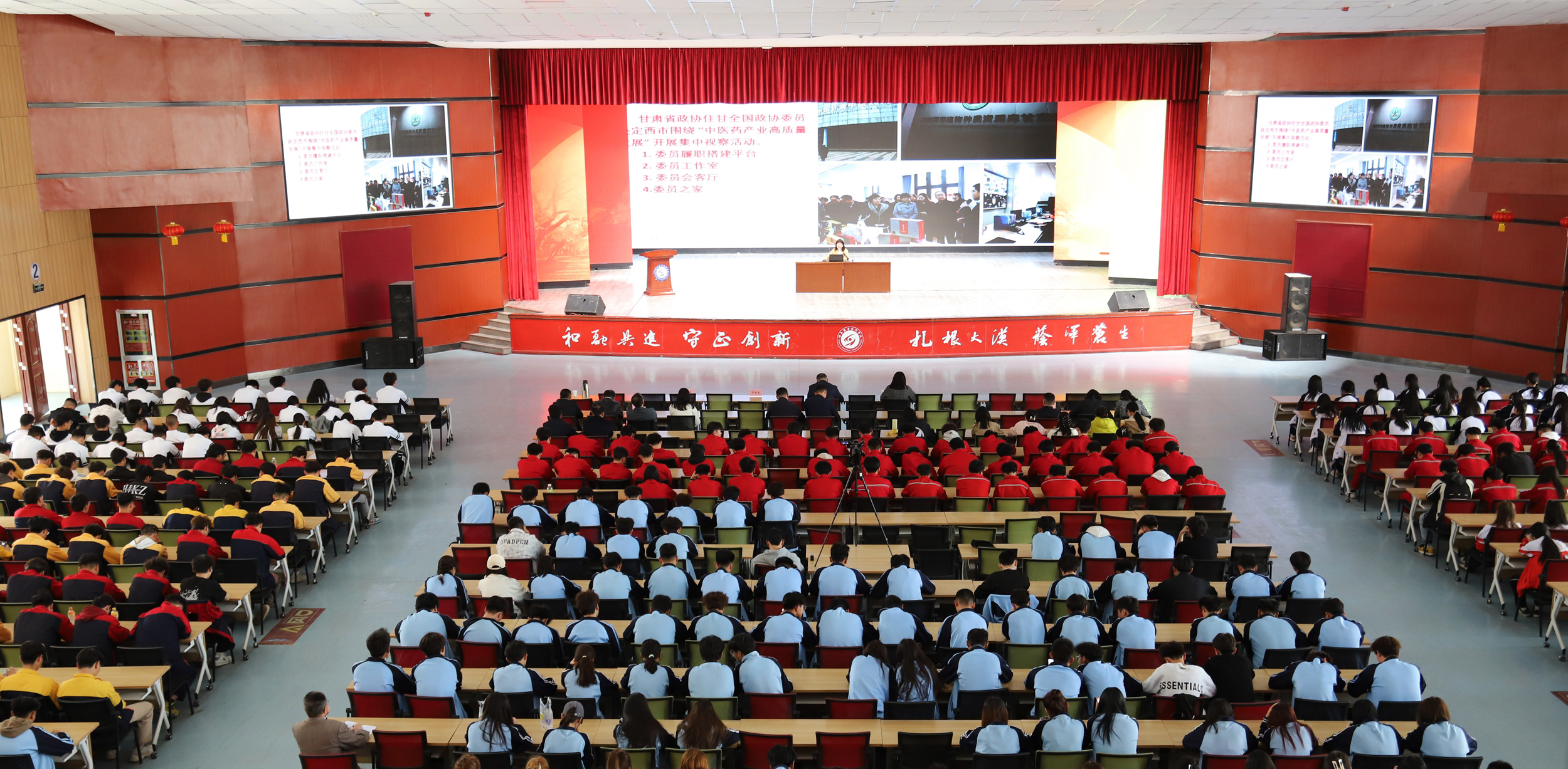要闻快递 > 正文为全面深入学习领会习近平总书记在全国两会期间发表的一系列重要讲话精神和全国两会审议通过的报告和文件精神,4月15日下午,学校在胡杨文化活动中心举办“理响校园·培根铸魂”全国两会精神示范性宣讲活动。省委教育工委第十一宣讲团组长河西学院马克思主义学院院长、教授顾文兵,成员张掖市肃南三中副校长、十四届全国政协委员贺颖春,河西学院马克思主义学院学生邵青波应邀来校开展宣讲。