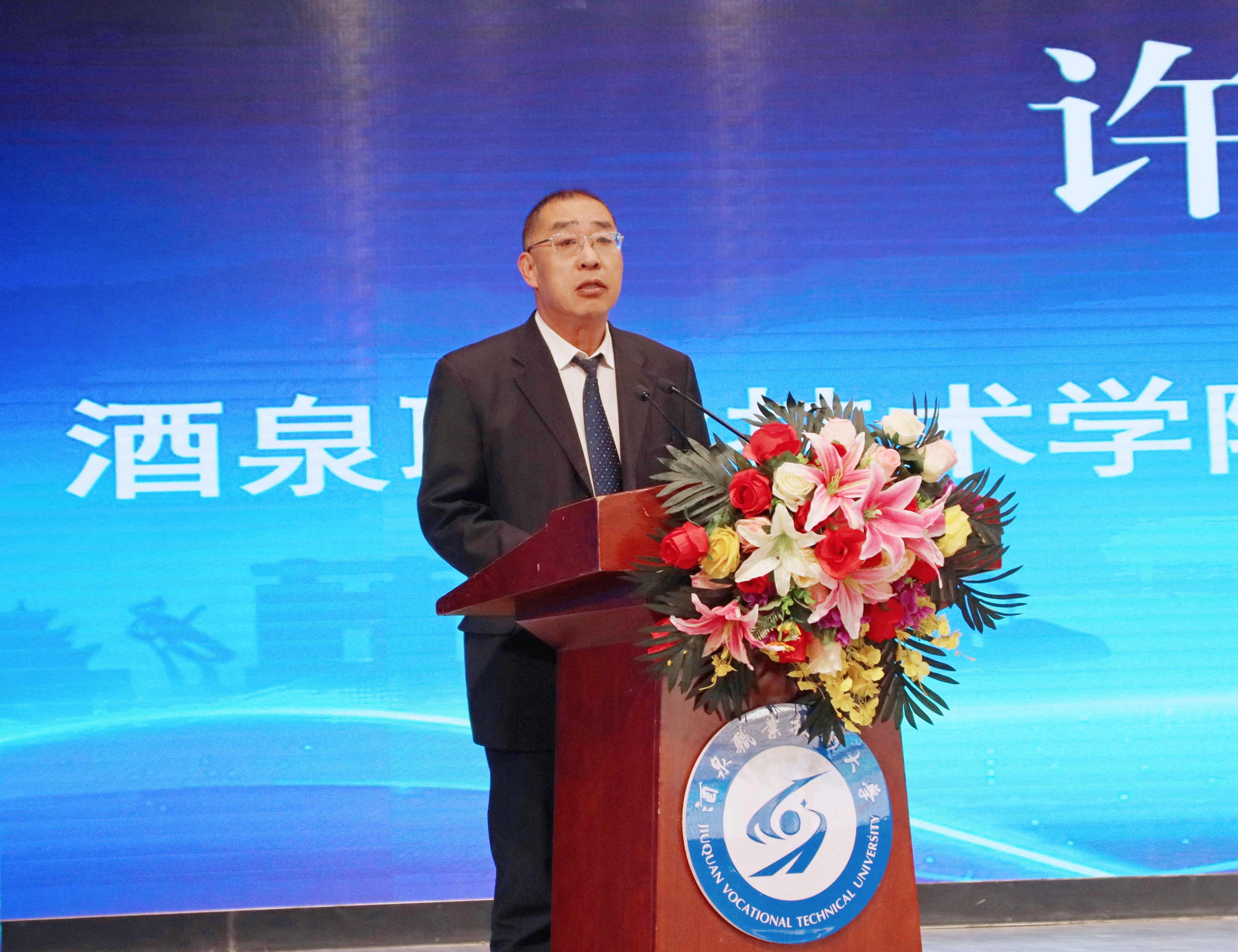 要闻快递 > 正文2025年4月23日,全国能源化工行业产教融合共同体成立大会在酒泉职业技术大学召开。甘肃省科技厅一级巡视员杨重存,酒泉市委常委、组织部部长赵正红出席会议。酒泉市政府副市长黄振东主持大会。兰州理工大学党委常委、副校长韩建平,中国石油天然气股份有限公司玉门油田分公司党委委员、副总经理张继昌,学校党委副书记、校长许军参加大会并致辞。