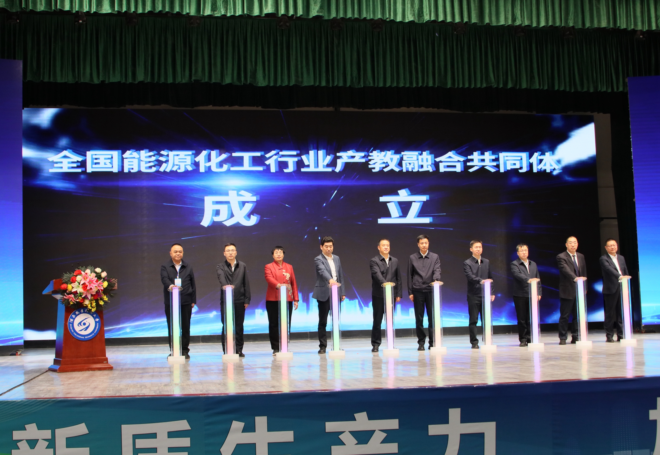 与会嘉宾共同启动全国能源化工行业产教融合共同体。会上宣读了全国能源化工行业产教融合共同体理事成员单位,并为理事长单位、常务副理事长单位授牌。
