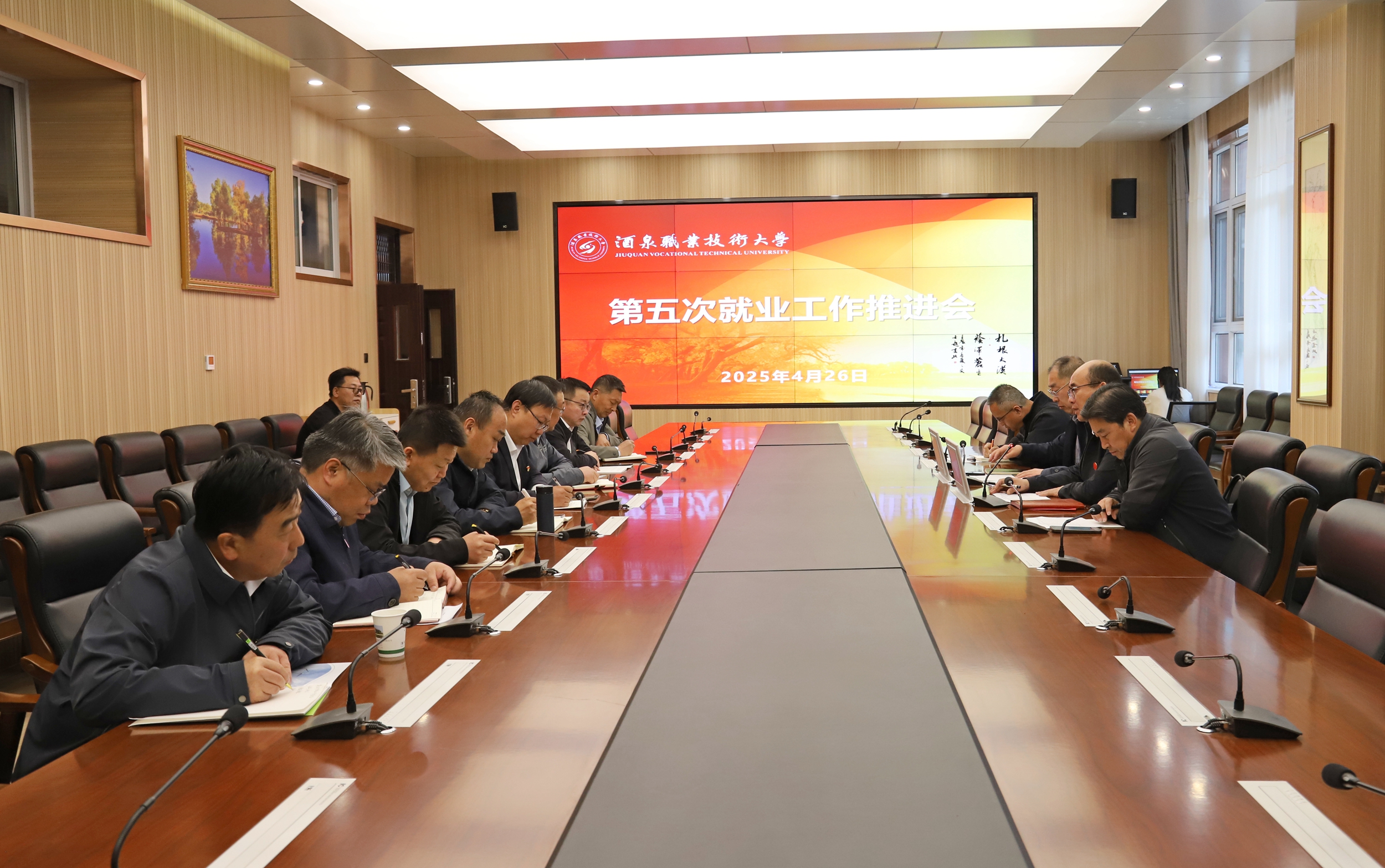 2025年4月26日上午,学校在弘毅楼静远厅召开了第五次就业工作推进会。学校党委副书记、校长许军出席会议并讲话。党委委员、副校长杨洁主持会议,招生就业处、各学院负责人参加会议。