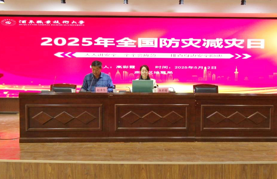 2025年5月12日下午,学校邀请肃州区地震局副局长马琴梅、肃州区地震局办公室主任高彩霞来校进行培训指导。马琴梅进行应急疏散演练指导,高彩霞开展题为“科学防震减灾,筑牢生命防线”的专题讲座。学校党委委员、副校长施荣出席活动,共计350余名学生参加。