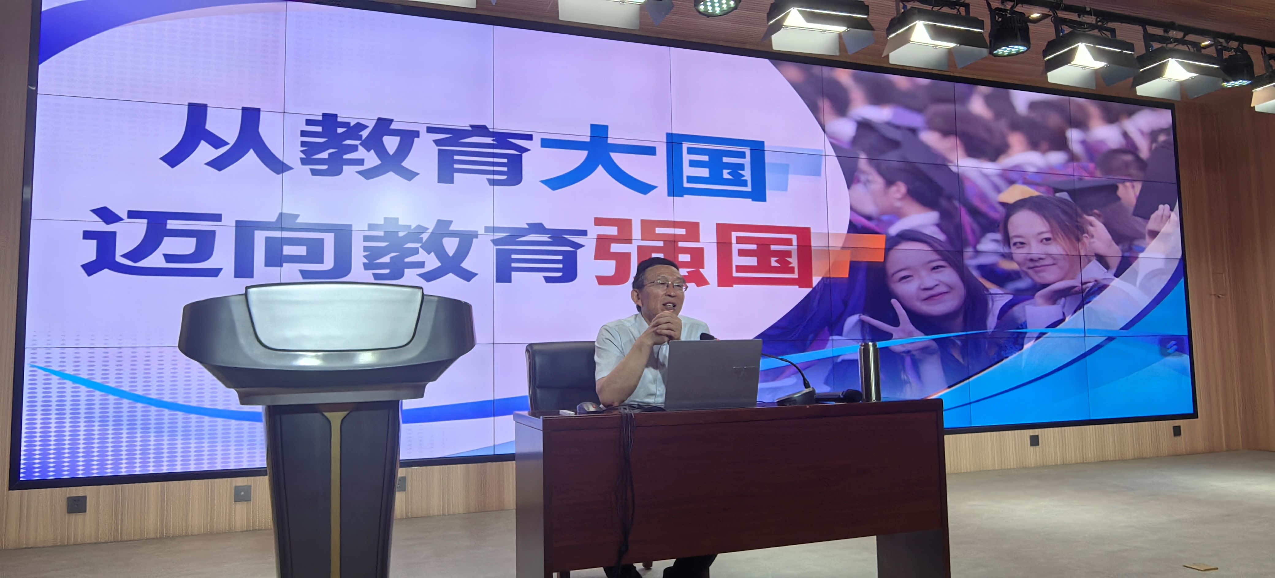 2025年5月19日晚,学校党委书记易志军教授以“从教育大国迈向教育强国”为主题,在弘毅楼闻道厅为教育与艺术学院学生讲授了一堂生动的形势政策课。课程深入解读了国家教育强国建设的战略部署,并结合国际形势和学校实际,激励青年学子勇担使命,为全面建设社会主义现代化强国贡献青春力量。