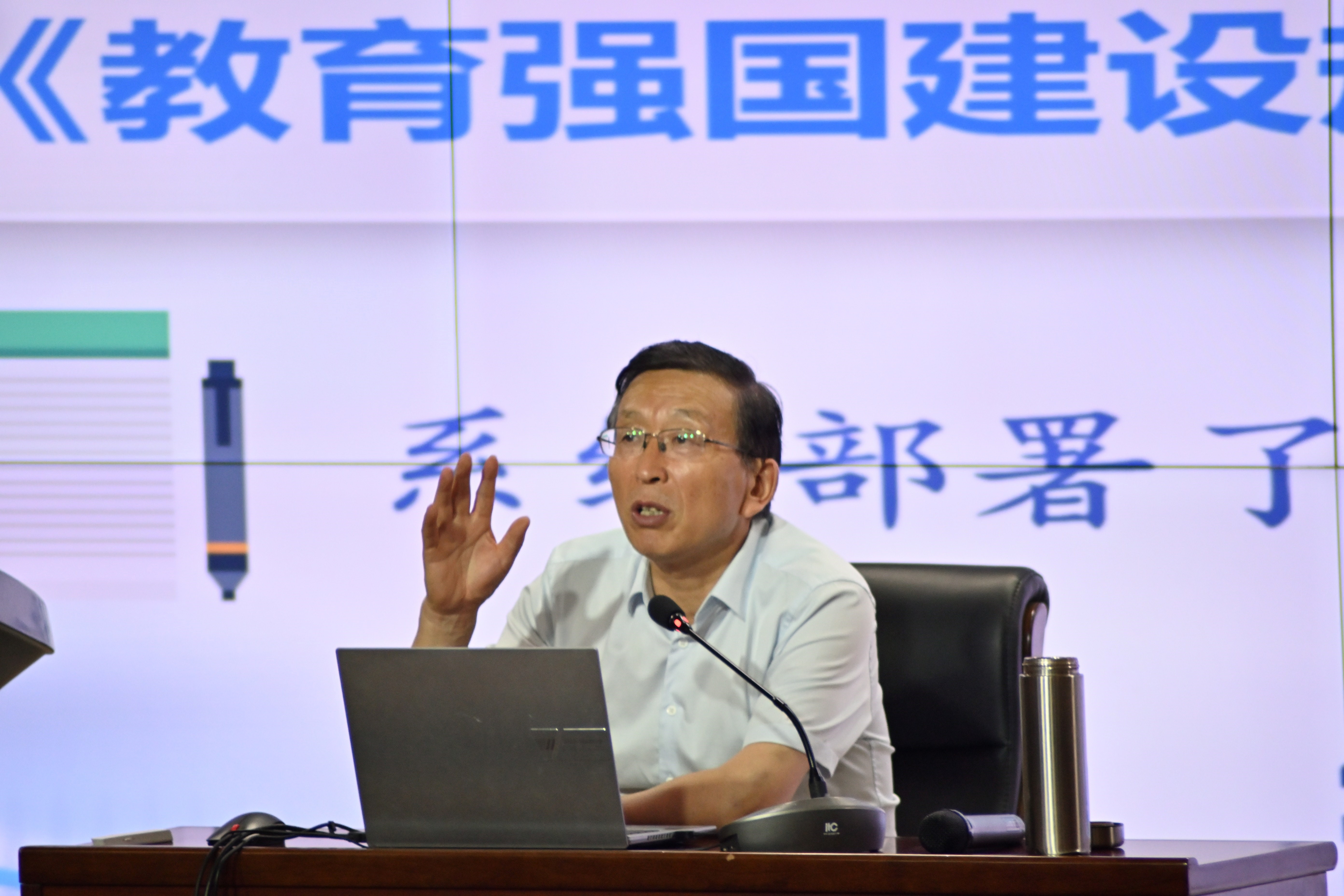 易志军教授围绕《教育强国建设规划纲要(2024—2035年)》,系统阐述了教育强国建设的核心任务。他强调,教育是“国之大计、党之大计”,建设教育强国是实现高水平科技自立自强、促进共同富裕的重要支撑。通过展示我国教育发展数据,他指出,我国已建成世界最大规模教育体系,但仍需破解“钱学森之问”,培养更多创新人才。教育兴则国家兴,教育强则国家强,要以教育之强夯实国家富强之基,跑好历史的接力棒。