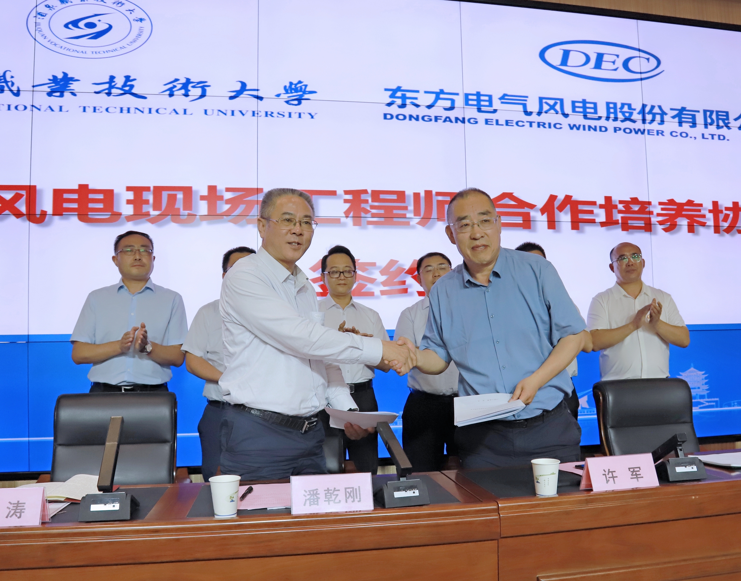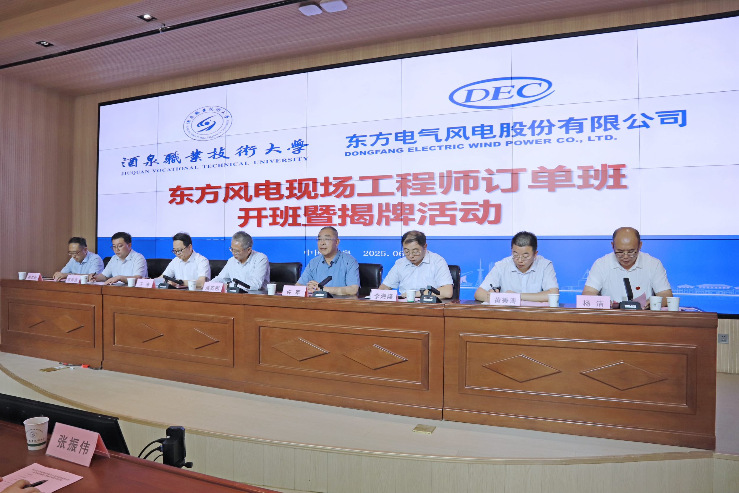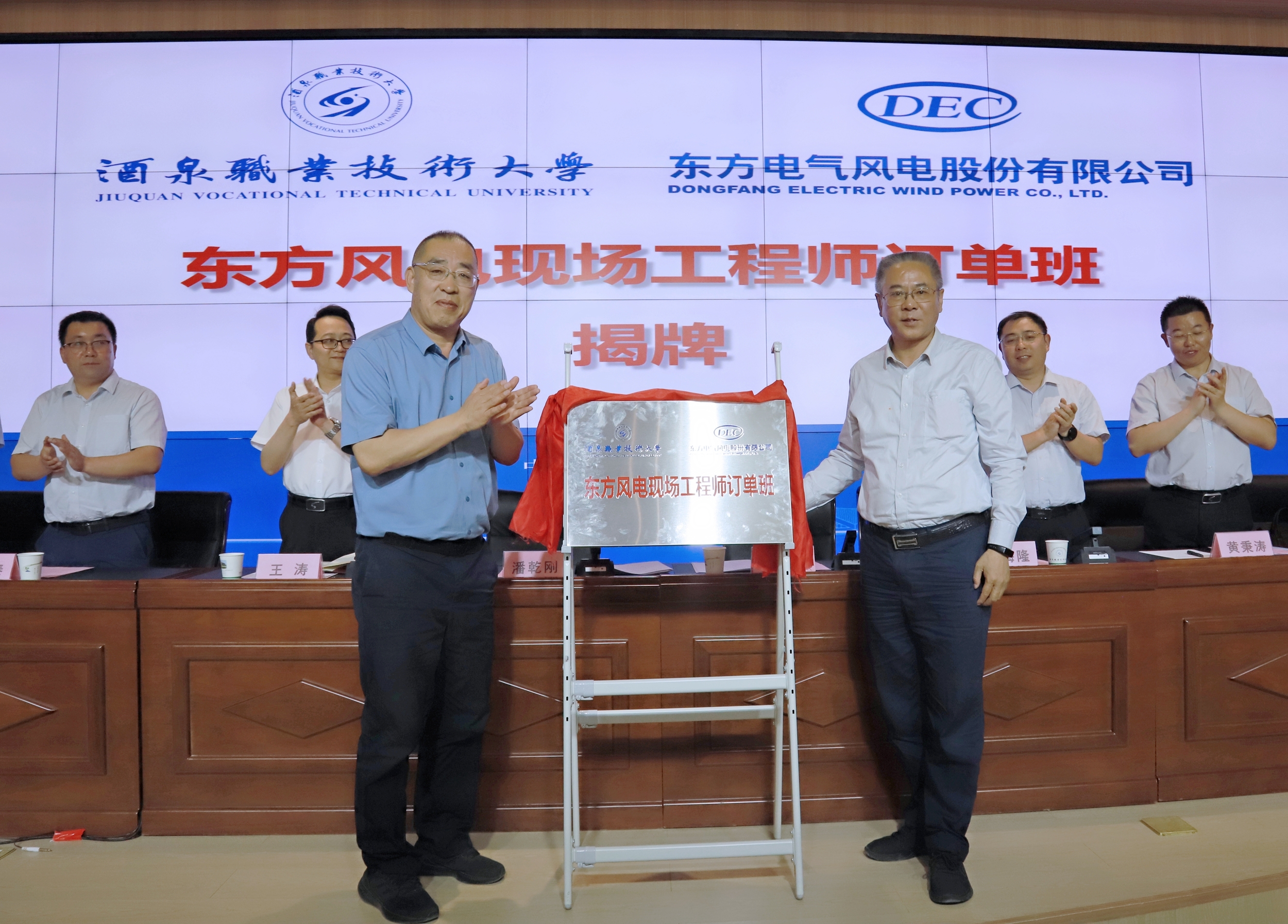 东方电气风电股份有限公司与酒泉职业技术大学签署合作协议,并共同为东方风电现场工程师订单班揭牌,标志着双方在校企合作方面迈出坚实的一步,也为学生成长之路奠定基础。