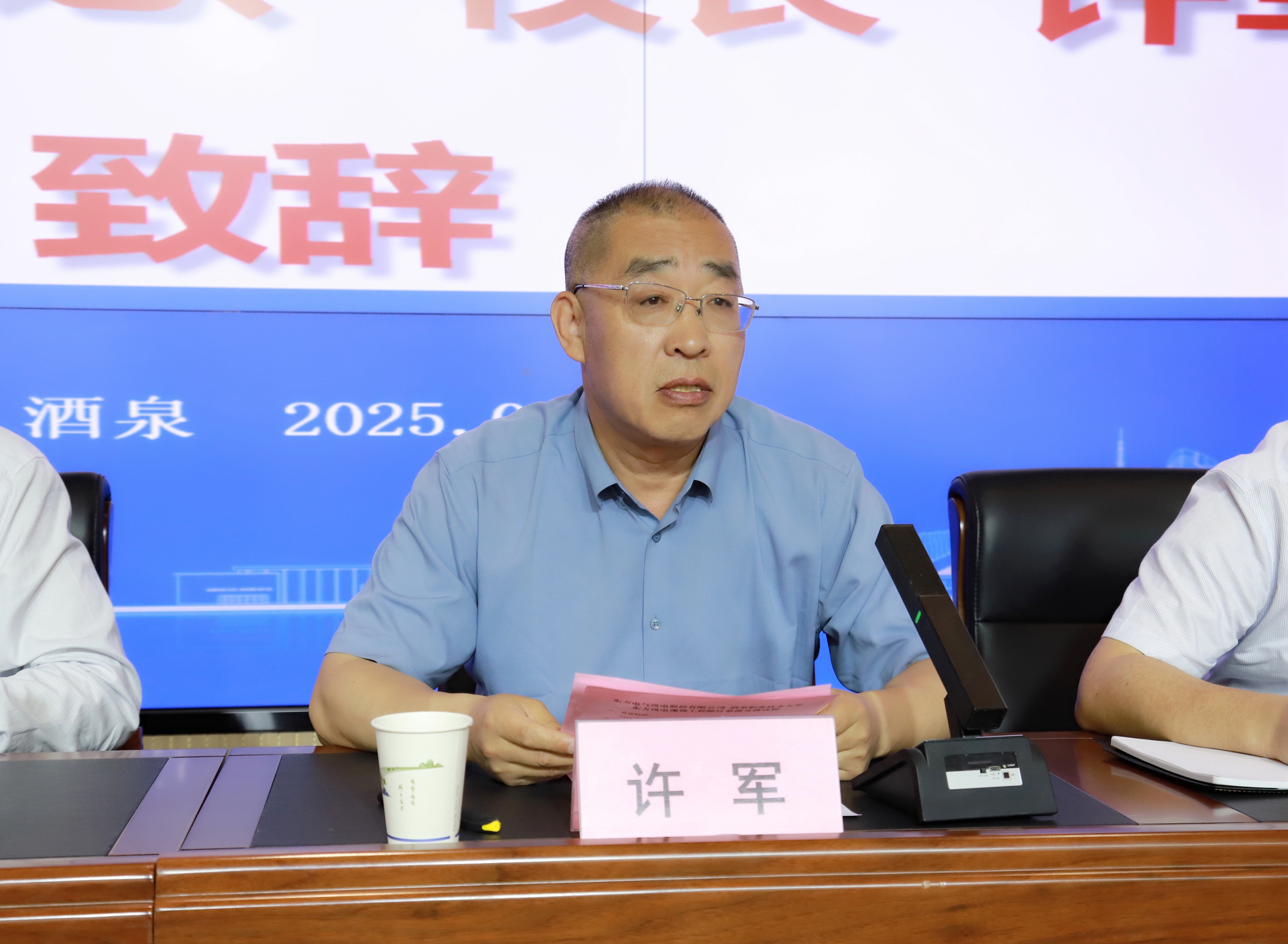 酒泉经济技术开发区党工委委员、管委会副主任王涛致辞,东方电气风电股份有限公司党委副书记、纪委书记、工会主席潘乾刚讲话。