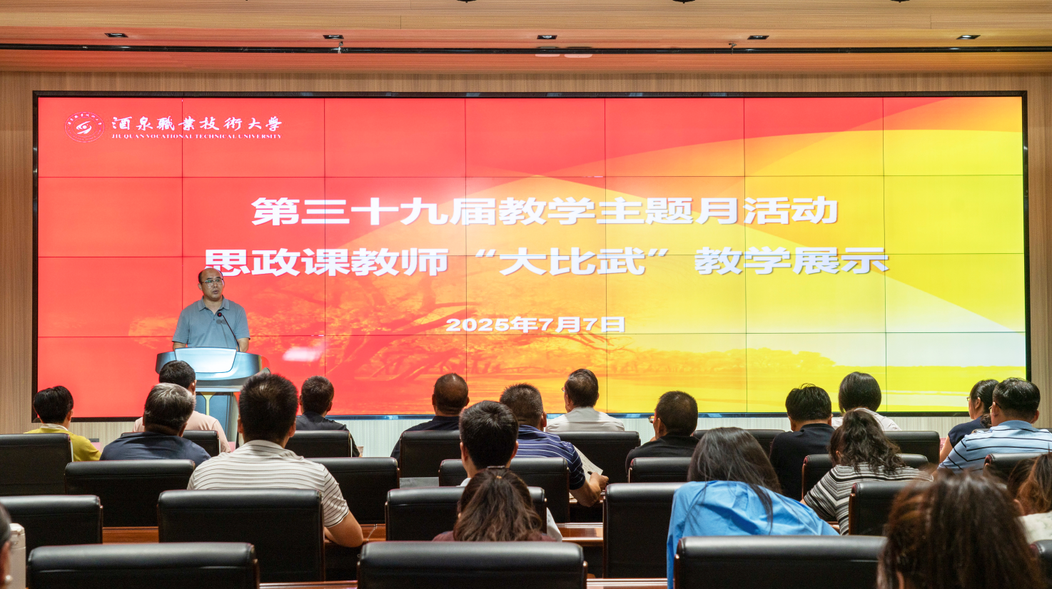 为进一步提升思政课教师的教学能力和水平,推动思政课教学改革创新。2025年7月7日下午,学校在弘毅楼C-102开展第三十九届教学主题月思政课教师“大比武”教学展示活动。学校党委书记易志军,党委副书记、校长许军出席活动。学校党委委员、副校长杨洁主持活动,各学院负责人及教师代表共100人参加活动。