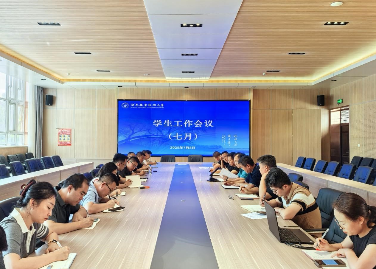 2025年7月8日下午,学校在弘毅楼C103会议室召开7月份学生工作会议。会议由学校党委委员、副校长施荣主持。学生工作部(处)、后勤管理处、应急安稳处、校产管理处、校团委、创新创业学院、心理健康与指导中心负责人,各二级学院分管学生工作领导参加会议。