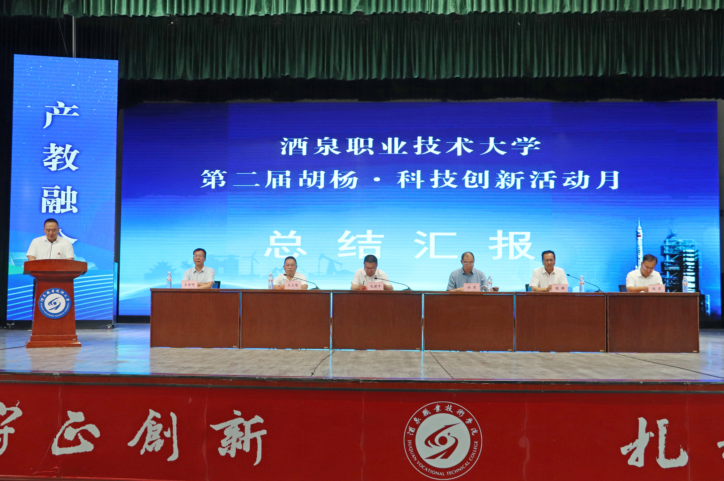 2025年7月10日,学校在胡杨文化活动中心召开第二届胡杨·科技创新活动月表彰大会暨闭幕式。酒泉市科技局党组书记、局长毛建平,学校党委副书记、校长许军,党委副书记王立智,党委委员、纪委书记、监察专员魏韡,党委委员、副校长施荣等出席活动。闭幕式由党委委员、副校长王金明主持。各二级学院、酒泉卫校、工贸中专分管科研领导、教师代表及获奖师生代表参加活动。