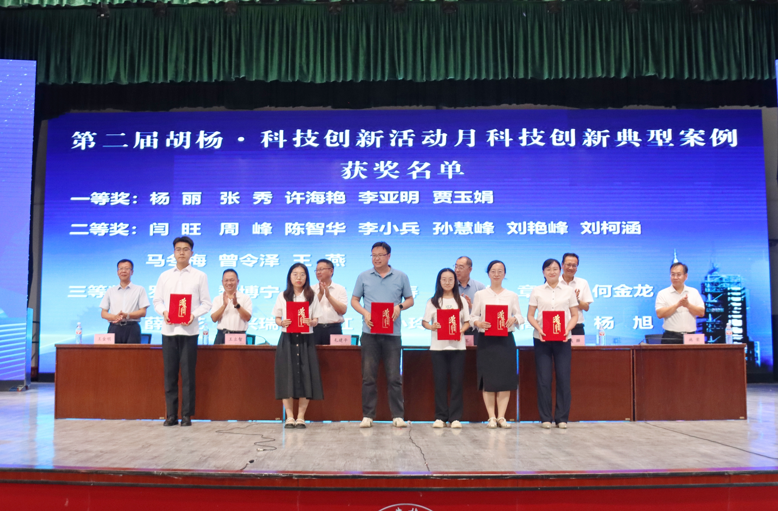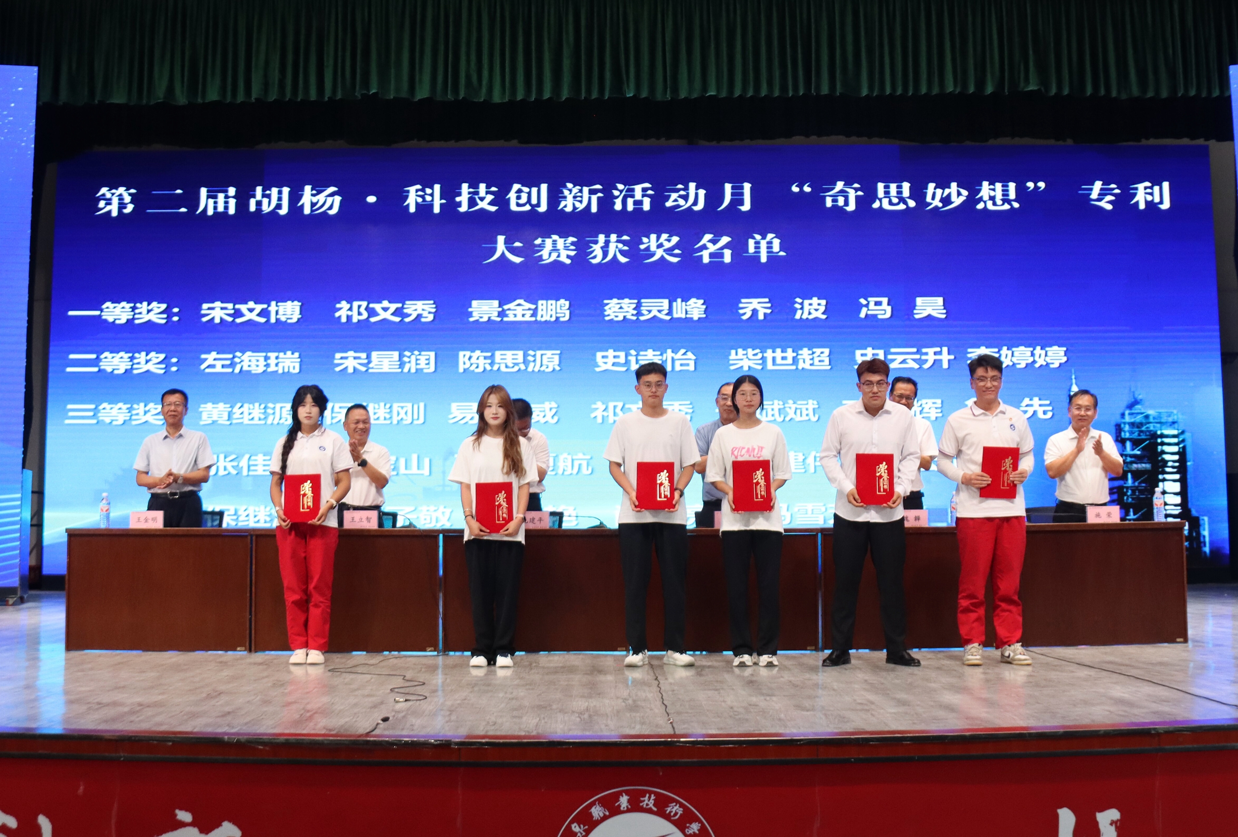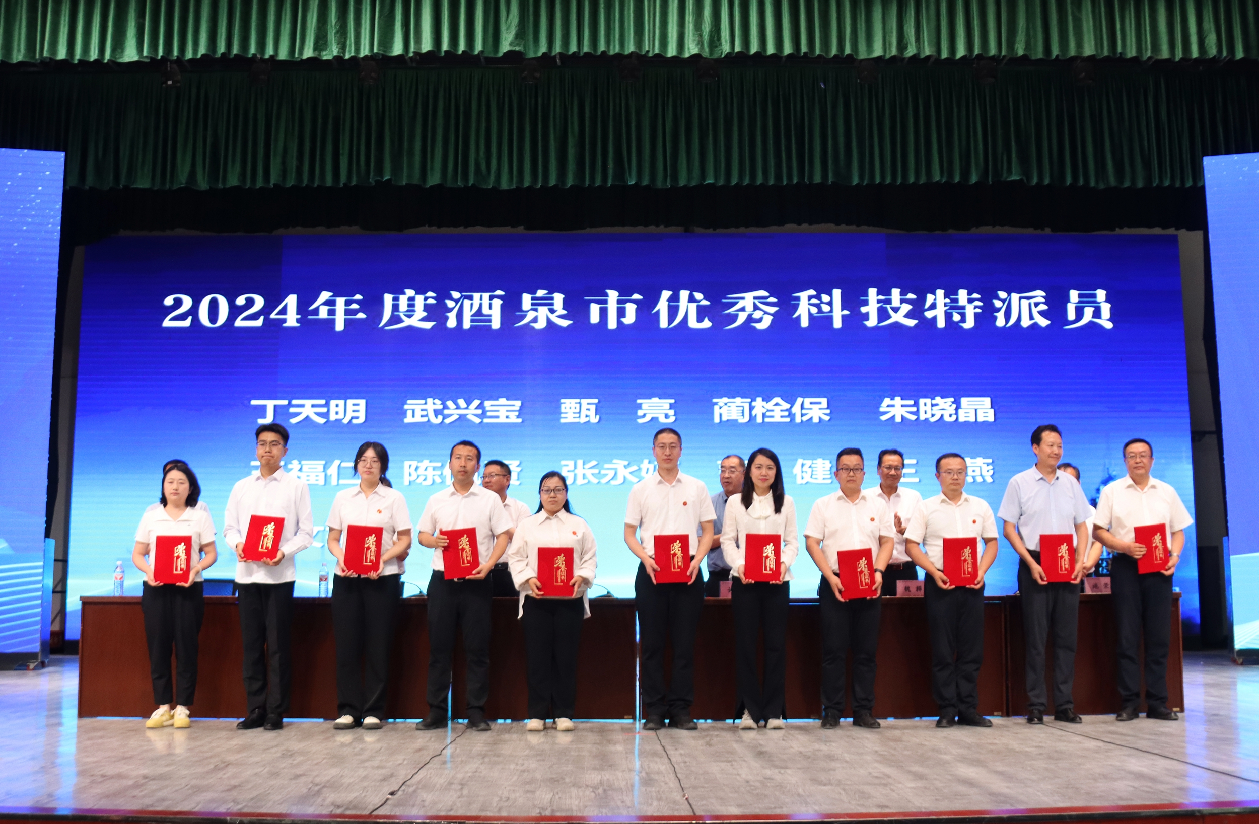 毛建平宣读了酒泉市科学技术局《关于2024年度市级科技特派员考核结果的通知》。校领导宣读了第二届胡杨·科技创新活动月各类项目获奖名单,并进行了颁奖。